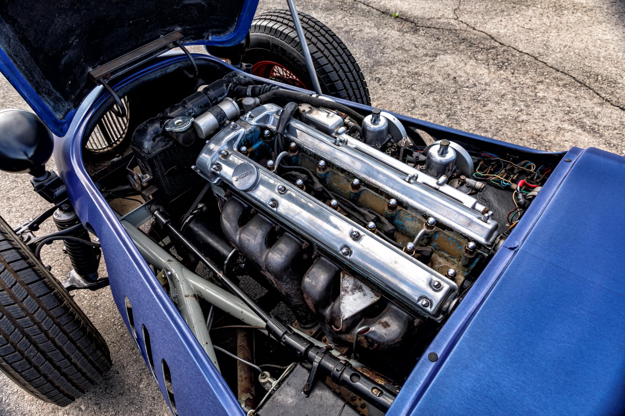 Il est rare en effet de rencontrer un moteur moderne qui soit vraiment bruyant, où qui engendre des vibrations que l’on perçoit au travers du plancher ou des commandes d’une Kougar. Le silence mécanique est plutôt fonction de la qualité et du soin apporté à l’isolation acoustique de l’habitacle et il n’y a pas de véritable habitacle dans une Kougar Roadster… Son moteur Jaguar n’étant pas modifié, les supports moteur étant ceux d’origine, et l’ensemble châssis et carrosserie étant rigide, il serait injuste de comparer la conduite d’une Kougar à une berline Jaguar XJ-6 qui représente une tout autre classe de voiture. Ce que je reconnais cependant, c’est que le six-cylindres de la Kougar n’émettait aucun de ces bruits que je qualifie de “singuliers”, comme les claquements de chaîne de distribution ou de soupapes… La voiture atteignait des vitesses élevées en très peu de temp, mais j’étais perpétuellement assailli de bruits…