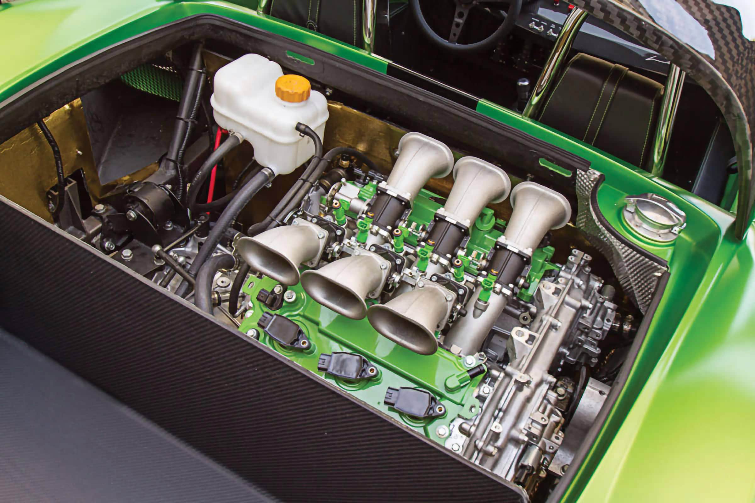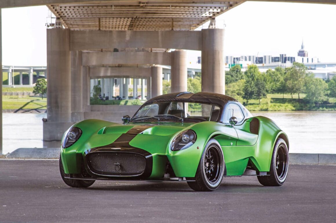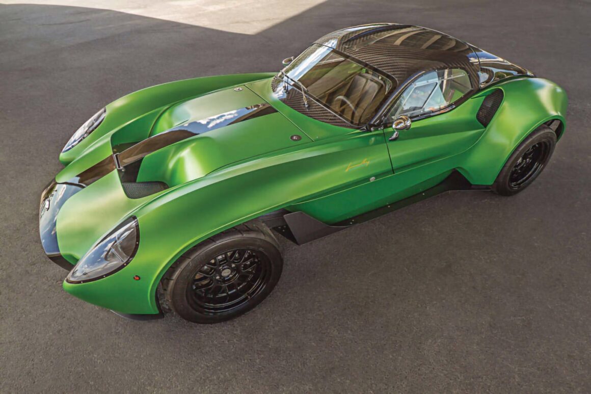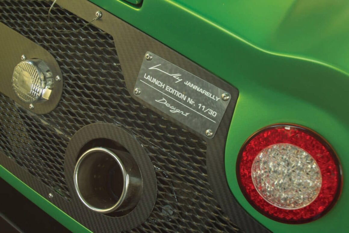 Après avoir conduit et s’être attaché au prototype bleu et rouge, Anthony a alors commencé à repenser la palette de couleurs et décidé qu’il voulait quelque chose d’inhabituel, pour attirer les clients inhabituels vers son Roadster qui serait unique et se démarquerait vraiment. En fin de compte, il a choisi un vert venimeux avec noir et fibre de carbone. À la fin du mois de mars 2018, le châssis roulant a été transporté par avion à Louisville, dans le Kentucky, et confié à l’entreprise “The Dreamcar Co” pour l’installation du moteur et de la transmission. Compte tenu de l’approche méticuleuse de ce garage à l’égard d’une construction, cette partie du projet a été un processus fastidieux. Mais il a été à l’avant-garde de tout ce que Jannarelly Automotive cherchait à accomplir. Le projet s’est concrétisé. Il aura fallu environ trois ans pour passer de la commande à la conduite sur la route.