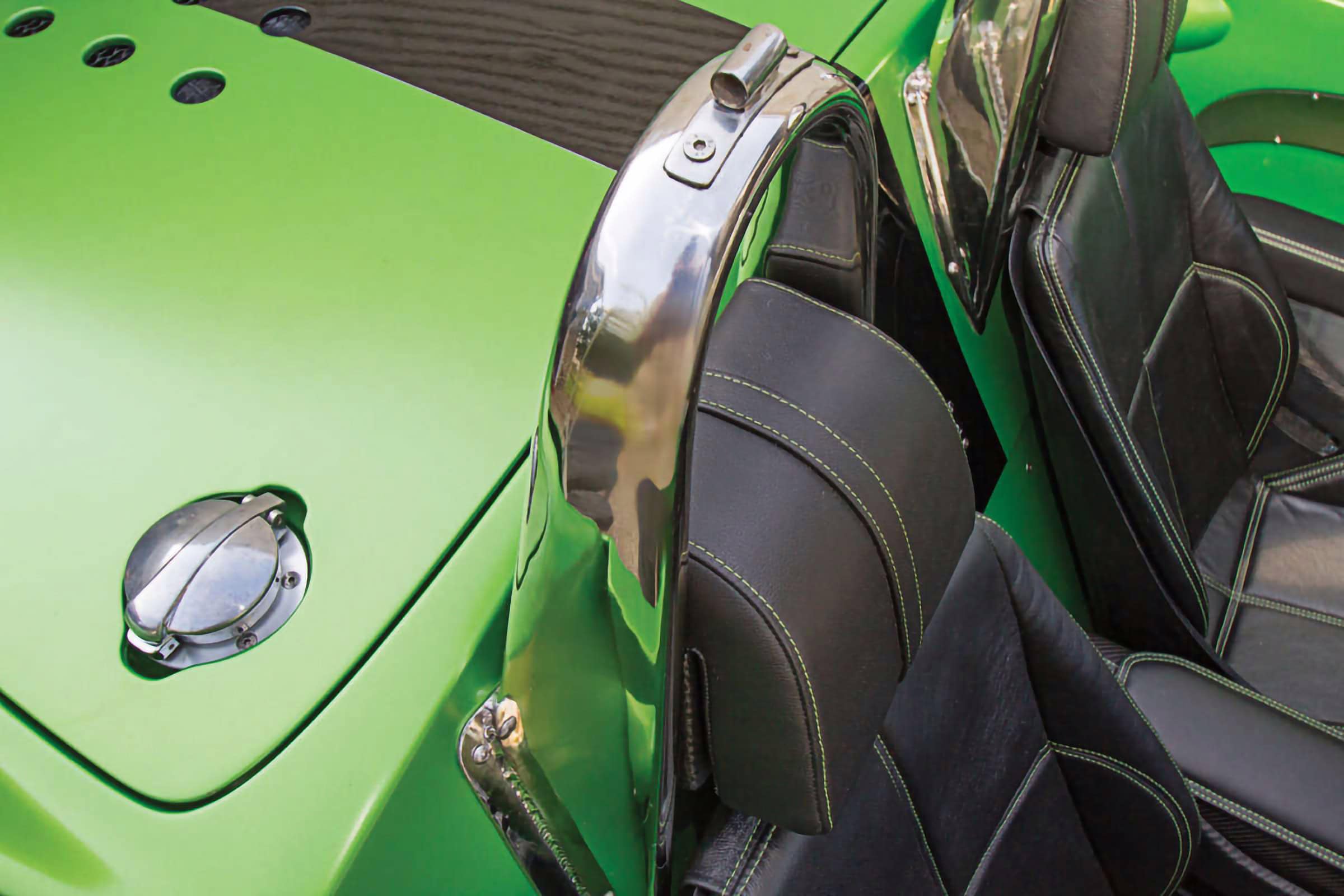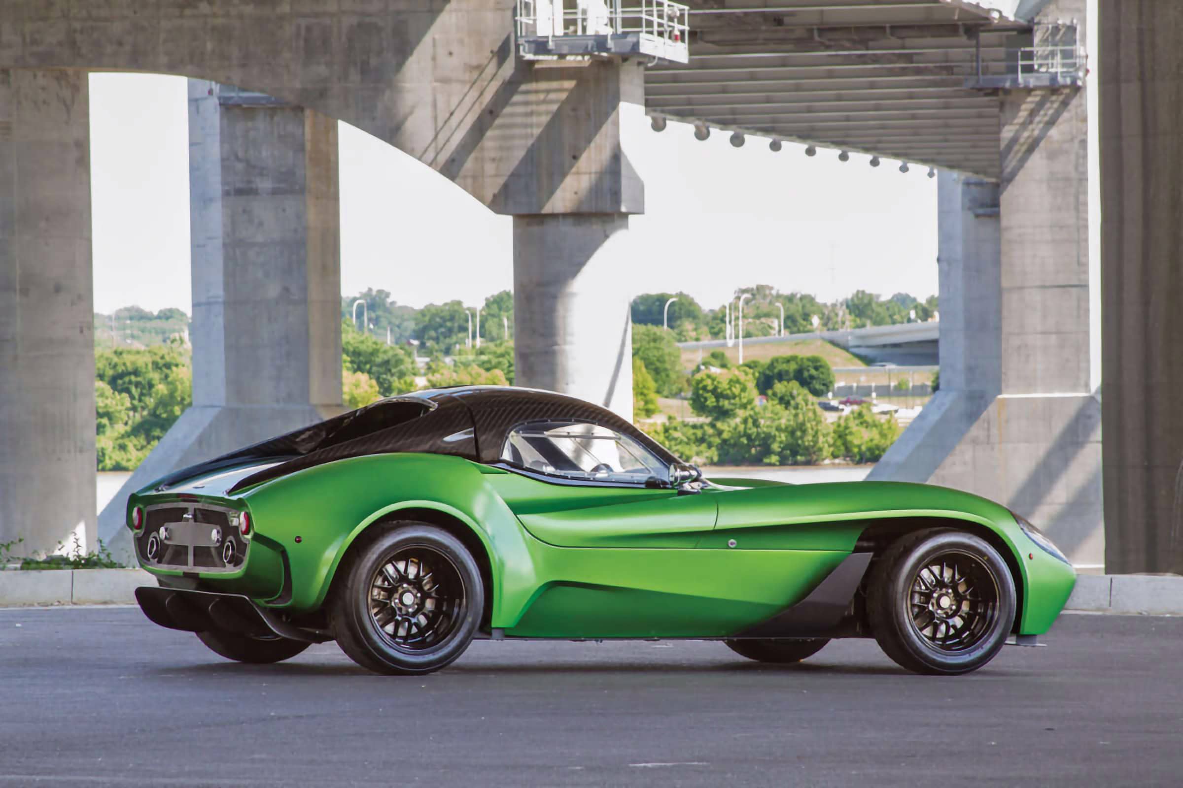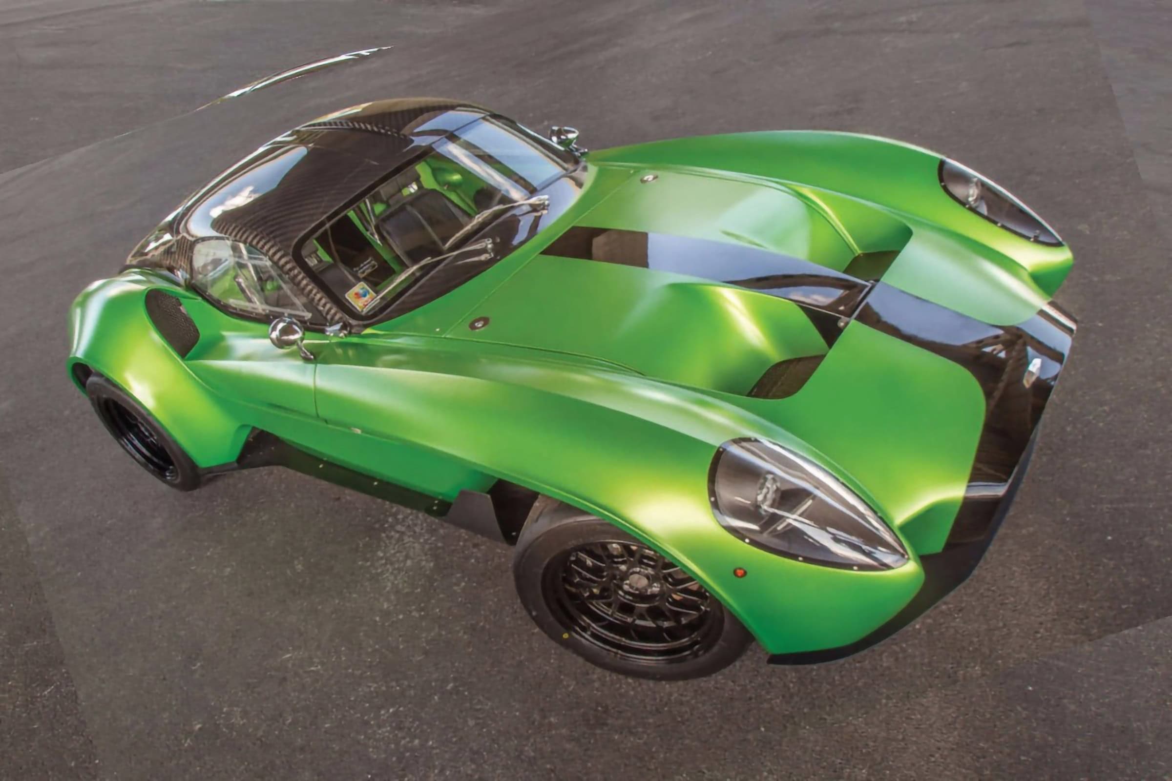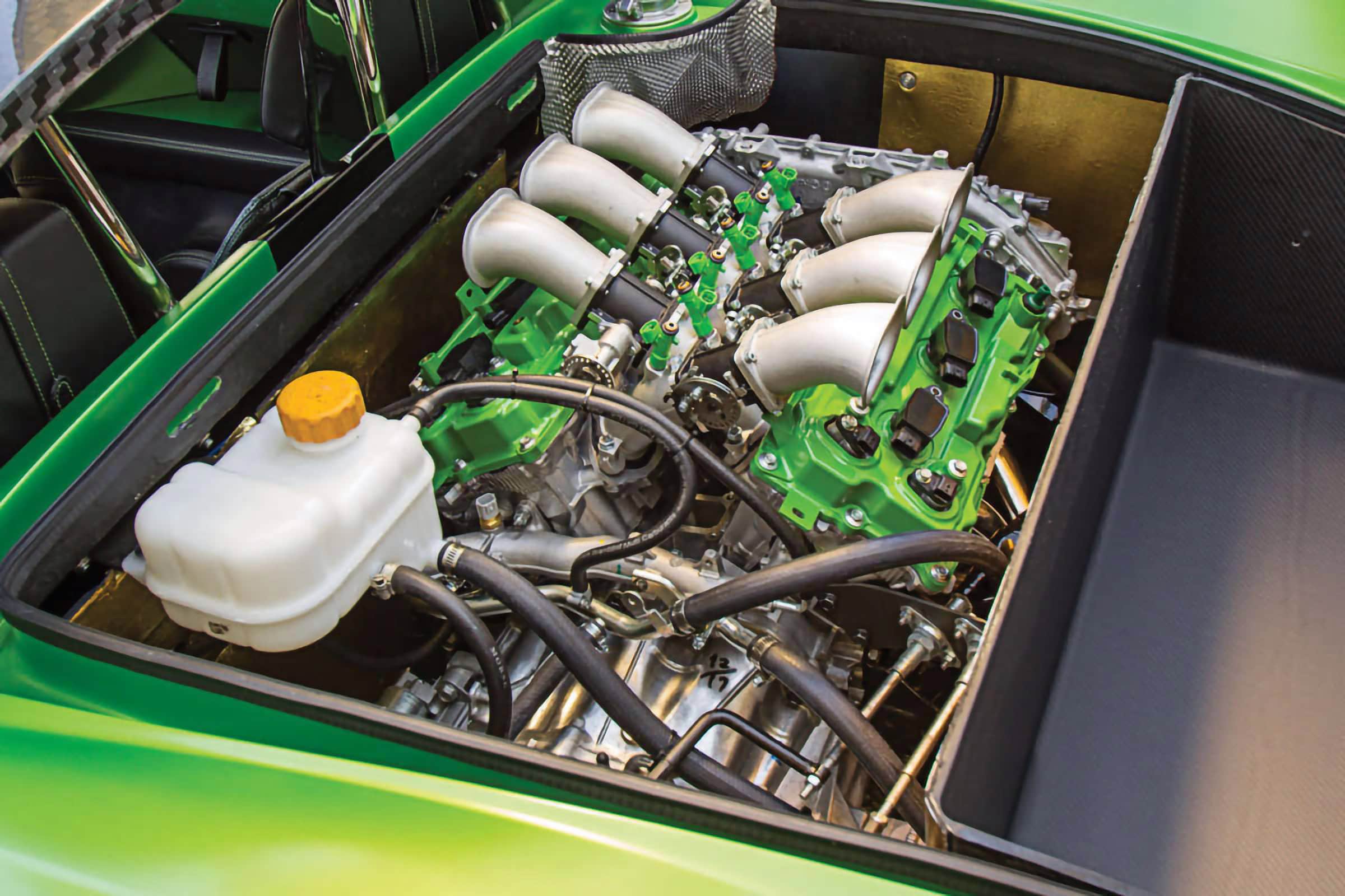 Après avoir conduit et s’être attaché au prototype bleu et rouge, Anthony a alors commencé à repenser la palette de couleurs et décidé qu’il voulait quelque chose d’inhabituel, pour attirer les clients inhabituels vers son Roadster qui serait unique et se démarquerait vraiment. En fin de compte, il a choisi un vert venimeux avec noir et fibre de carbone. À la fin du mois de mars 2018, le châssis roulant a été transporté par avion à Louisville, dans le Kentucky, et confié à l’entreprise “The Dreamcar Co” pour l’installation du moteur et de la transmission. Compte tenu de l’approche méticuleuse de ce garage à l’égard d’une construction, cette partie du projet a été un processus fastidieux. Mais il a été à l’avant-garde de tout ce que Jannarelly Automotive cherchait à accomplir. Le projet s’est concrétisé. Il aura fallu environ trois ans pour passer de la commande à la conduite sur la route.