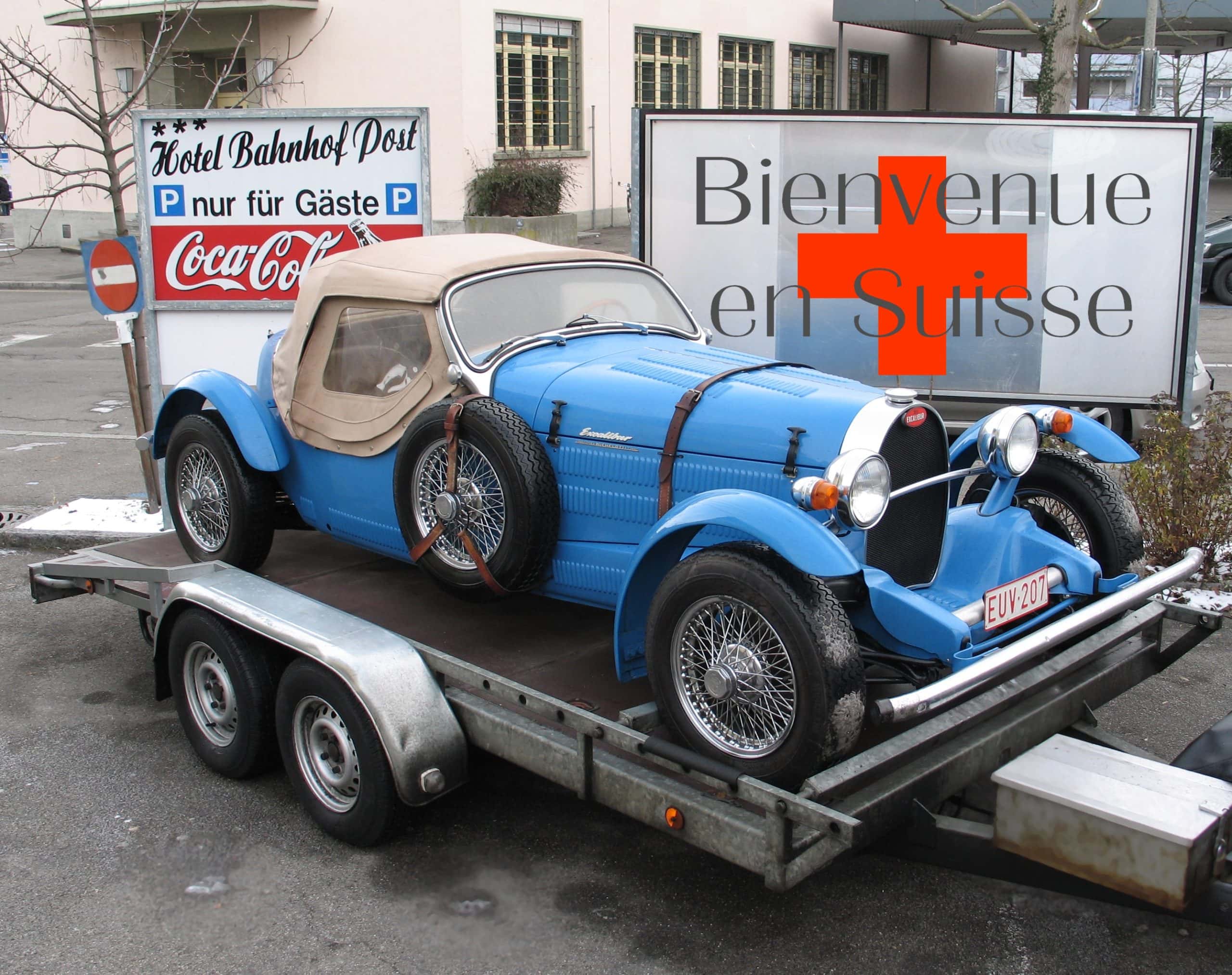 C’est un Suisse qui va chercher sa femme à la gare. Ils reviennent tous les deux sur l’avenue de la gare avec leurs valises à la main…., ils marchent depuis 500 m, quand soudain !… le monsieur Suisse fait un petit écart et piétine quelque chose.