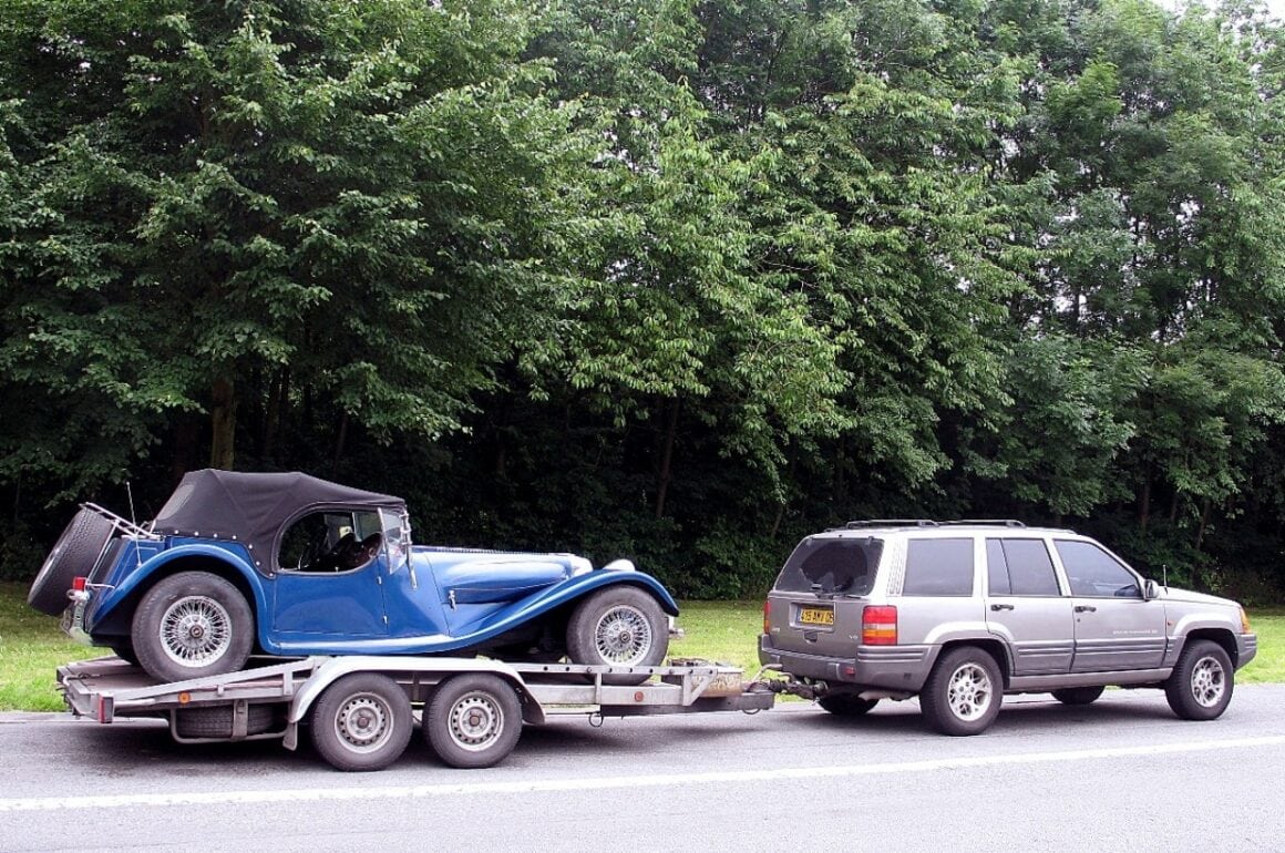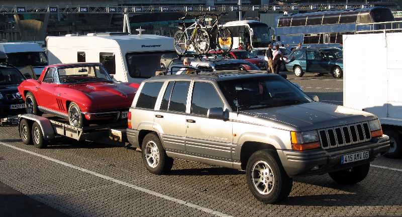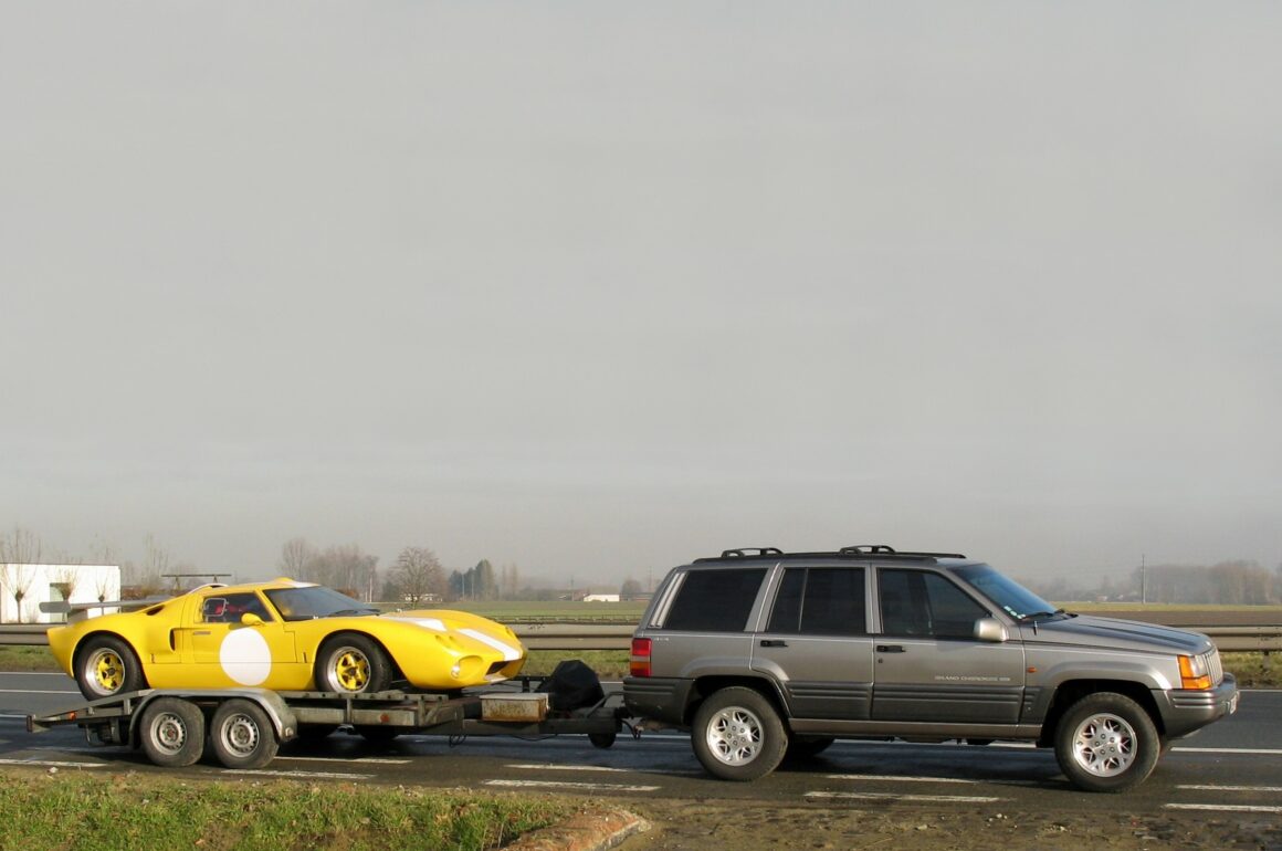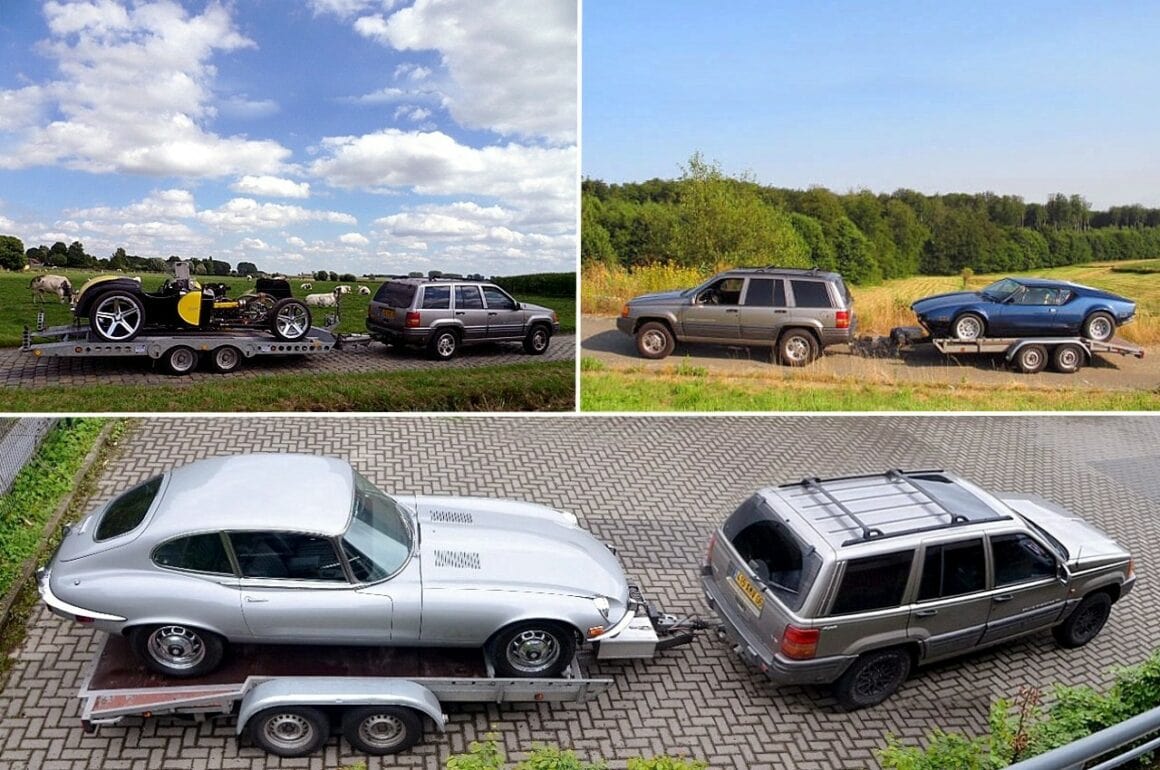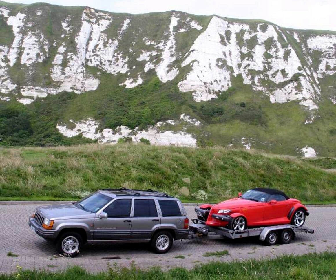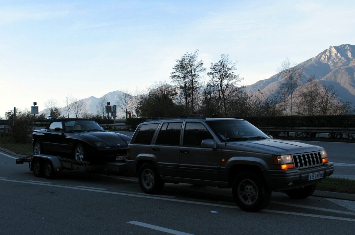 La Grand Cherokee était aussi proposée avec un tout nouveau moteur V8 essence de 5,2 litres de 215 chevaux qui portait la capacité de remorquage à 3 tonnes et rendait la Grand Cherokee idéale pour tracter une caravane Airstream ou une remorque porte-voiture… Pouvoir tracter une remorque porte-voiture et circuler dans le luxe et le confort, c’est ce qu’il me fallait… La nouvelle Grand Cherokee était assurément la bête avec laquelle je pourrais déplacer mes bagnoles de collection pour des ventes aux enchères (chacune son tour, bien sûr) sans plus devoir téléphoner à deux heures du matin à un dépanneur pour une Excalibur en panne… pour une Clénet en rideau… pour une Zimmer à l’agonie… pour un Hot-Rod en grève… Bref, pour n’importe laquelle de ces bêtises “roulables”… Pouvoir partir vers n’importe où (et en revenir) : Monaco, Saint-Tropez, Biarritz, Strasbourg, la Belgique, la Suisse, l’Allemangne, le Royaume-Uni d’Angleterre et même la Suède et l’Espagne… Plus de soucis pour les réunions, les ventes aux enchères, voire pour des achats, des échanges… Serein… Toujours…
