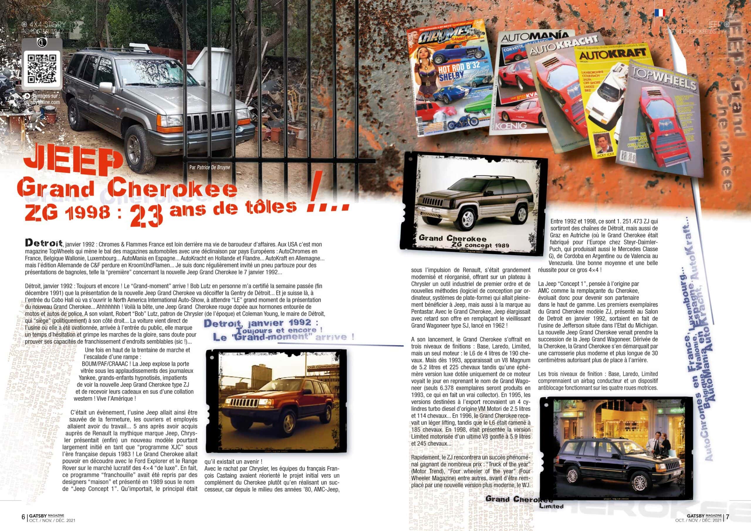 Rapidement, le ZJ rencontrera un succès phénoménal gagnant de nombreux prix : “Truck of the year” (Motor Trend), “Four wheeler of the year” (Four Wheeler Magazine) entre autres, avant d’être remplacé par une nouvelle version plus moderne, le WJ. Entre 1992 et 1998, ce sont 1. 251.473 ZJ qui sortiront des chaînes de Détroit, mais aussi de Graz en Autriche (où le Grand Cherokee était fabriqué pour l’Europe chez Steyr-Daimler-Puch, qui produisait aussi le Mercedes Classe G), de Cordoba en Argentine ou de Valencia au Venezuela. Une bonne moyenne et une belle réussite pour ce gros 4×4 !