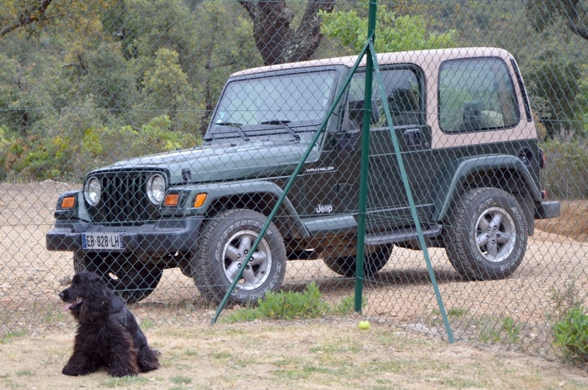 J’ai donc résolu d’en revenir pour mes balades de retraité, à une bonne Jeep Wrangler type II (avec les ressorts hélicoïdaux et pas les lames de ressorts de type charrette), en 6 cylindres 4L0 et boîte auto (par paresse, facilité et praticabilité)…, engin (rare) découvert par hasard en revenant du cours de mon Cocker Blacky chez ma comportementaliste canine préférée…