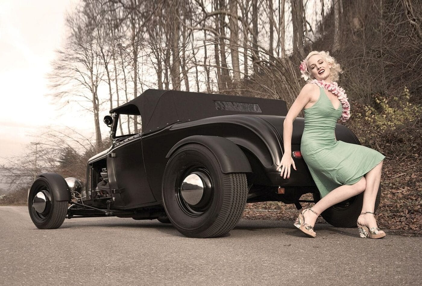 Les Hot-Rods, ahhhhhhhhhh ces voitures extraordinaires qui m’ont fait rêver dans ma jeunesse avec le cultissime film “American Graffiti“… J’ai pu réaliser ma passion en construisant en 1975 le premier Hot-Rod hexagonal (pas qu’il soit hexagonal, bande de nazes, mais parce que c’était le premier dans l’hexagone qu’est la France)…, puis en créant le magazine Chromes & Flammes consacré aux Hot-Rods et Custom Cars…, toute une époque (1979-2000 avec relance en 2019) ! Maintenant, les Hot-Rods ont évolués, ce sont devenus d’avantage des œuvres d’art que des mythes libertaires… et les passionné(e)s en reviennent aux Rod’s des débuts, basiques… Actuellement, je ne rêve plus vraiment de rouler… pour rouler… en Hot-Rod, venant de nulle part pour aller n’importe ou…, maintenant, mes vacances ce sont des raves, des sorties avec la Jet-Set dans des boites branchées… bref je navigue dans d’autres styles d’endroits où vous ne me croiserez pas, mais où vous rencontrerez sûrement quelqu’un d’autre. Je me suis laissé aller entre les mains d’une Hot-Roddeuse experte en soirées branchées et en Cruising’s déjantés et pour profiter au mieux de mon bonheur, j’ai décidé de lui laisser le clavier… (elle s’est déjà éclatée dans la rubrique “motocyclisme” avec un “papier” sur les Choppers… (kathy Pouffe et les Choppers…) !