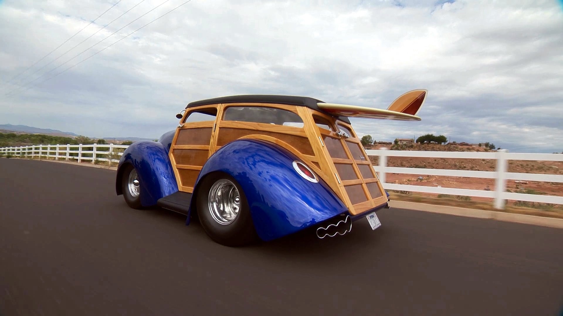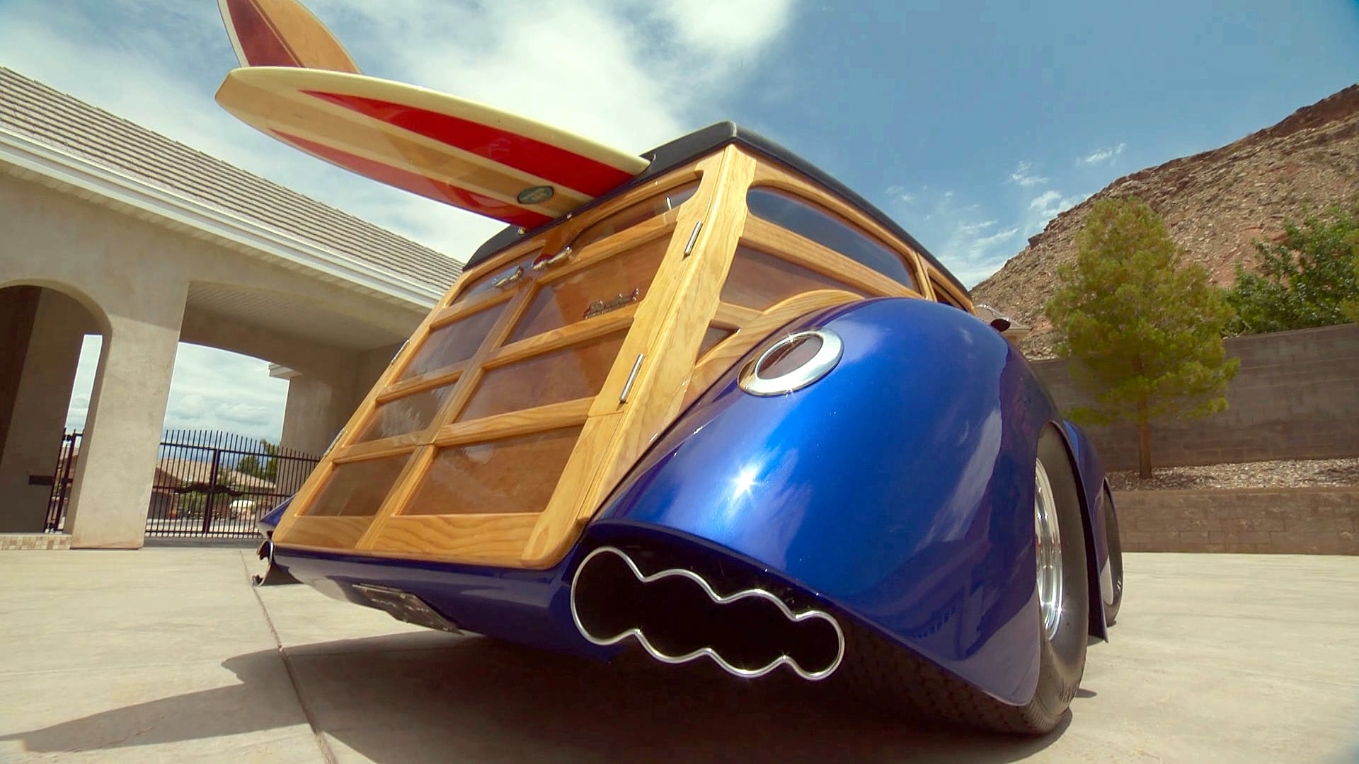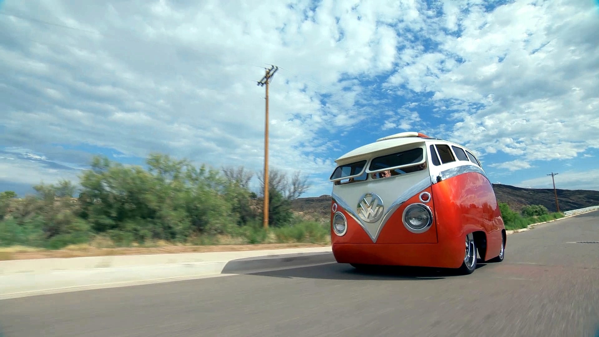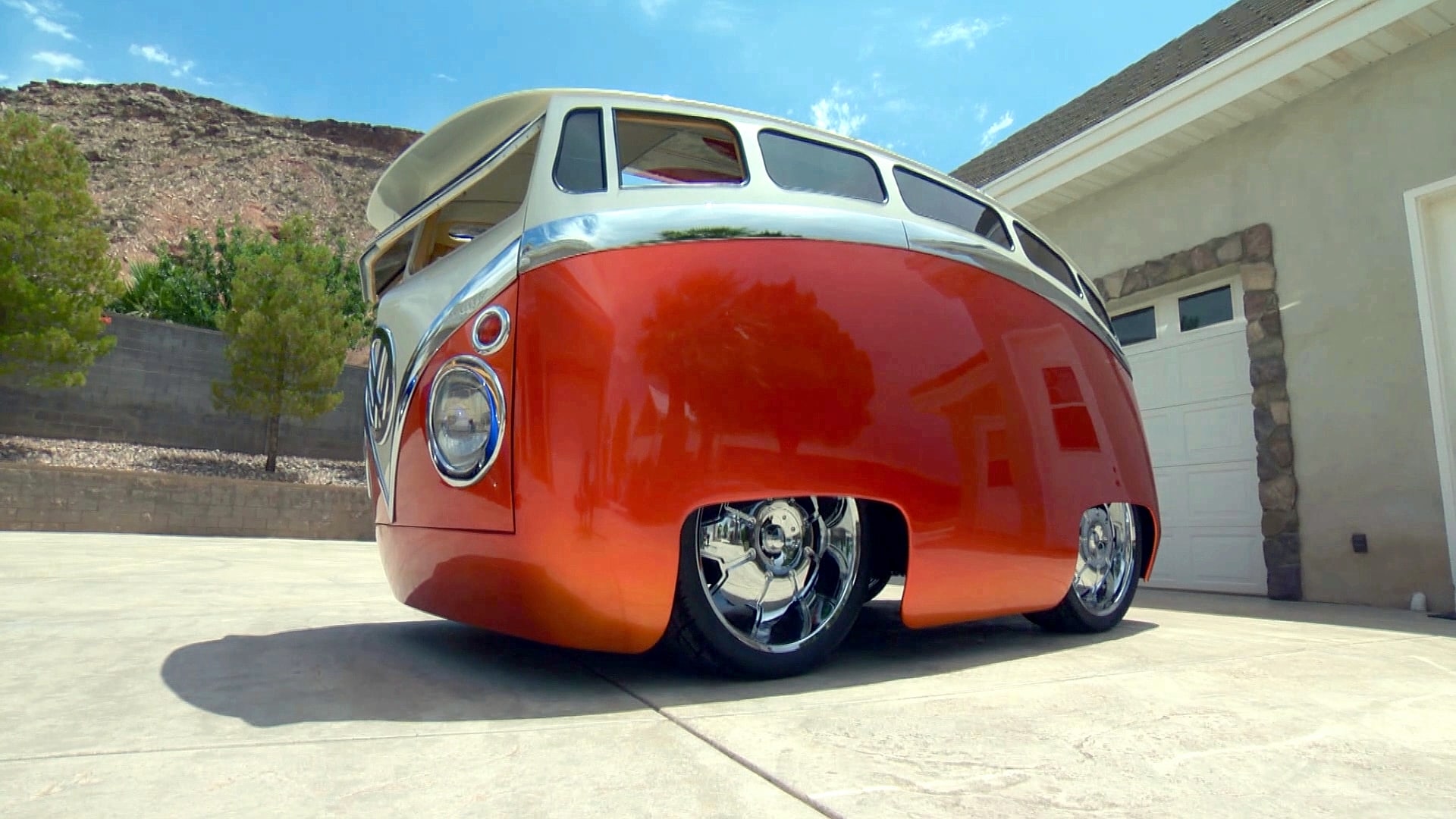 C’est à environ 600 km de la plage la plus proche, que crèche ce VW Samba en forme de saucisse de Frankfurt surnommé “Surf-Seeker”, de sorte que vous devez vous demander ce que fait cet engin réalisé à la gloire du Surf, dans un endroit du désert de l’Utah.