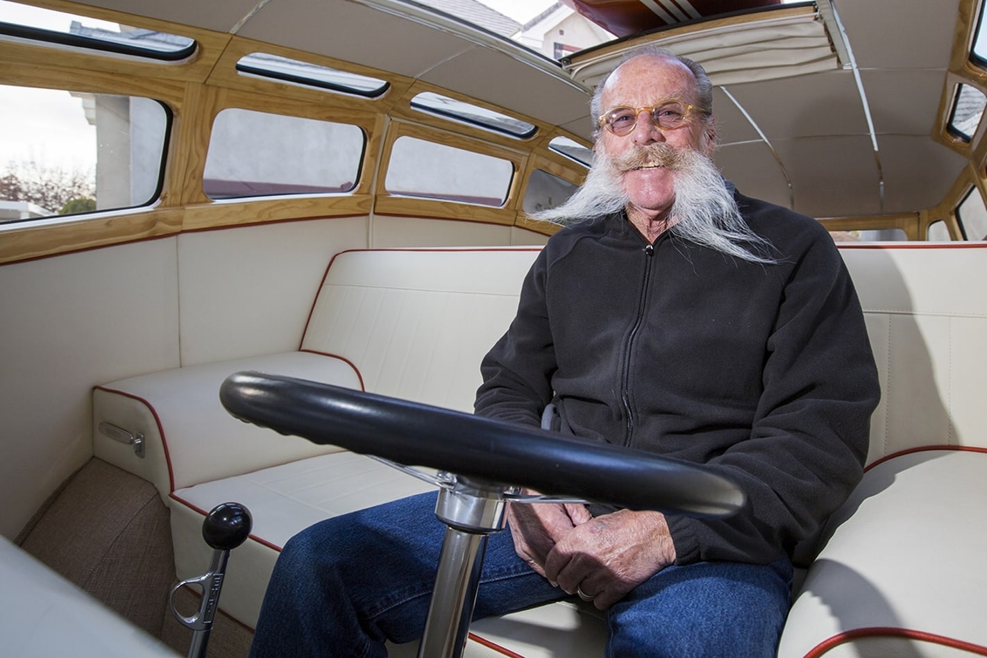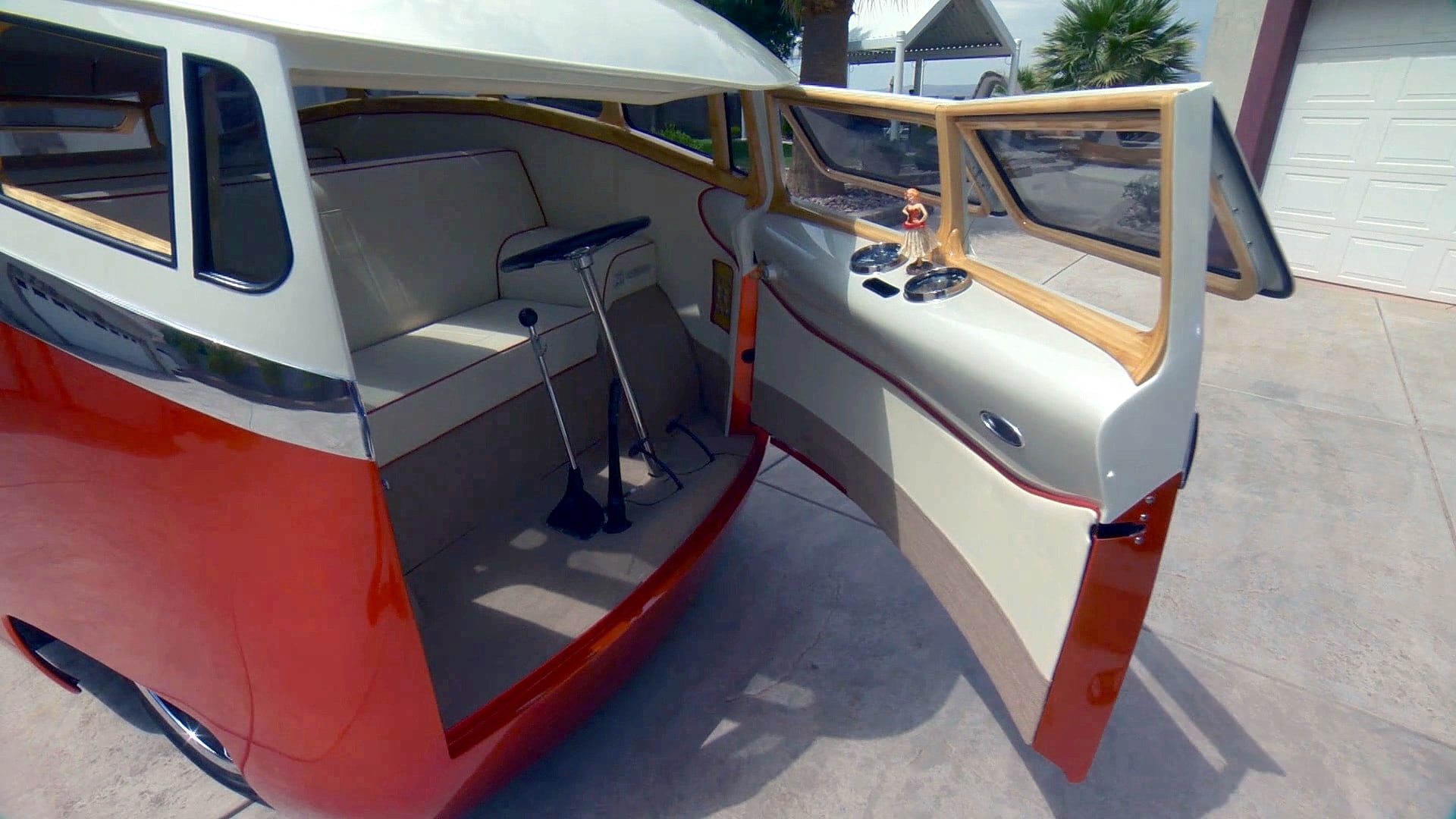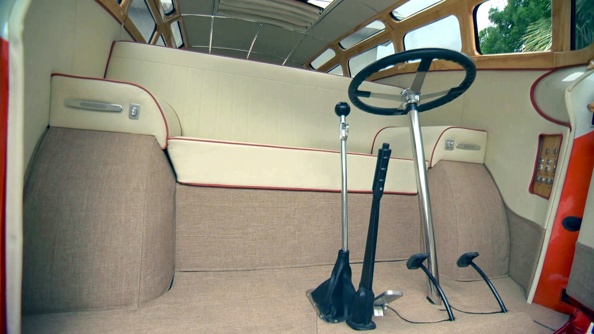 Il est difficile de croire, que ce VW Samba “Surf Seeker” a été achevé en seulement 17 mois, ce qui comprend la construction de l’ensemble de la carrosserie et l’intérieur, sans oublier la reconstruction d’un châssis VW)…, pour Ron, le processus de conception est celui de l’évolution… et cela prend du temps.