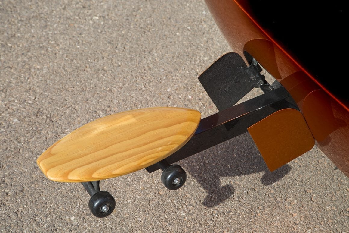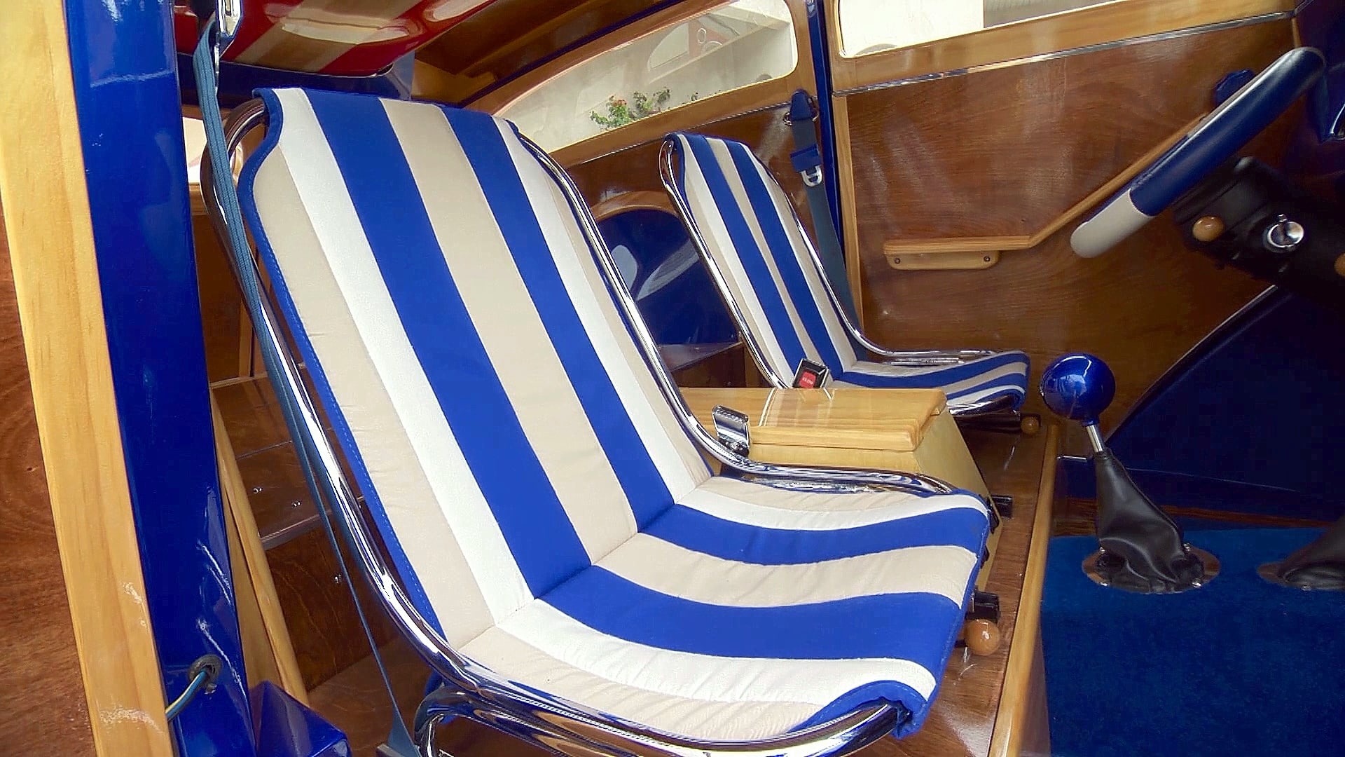 -“Dis-moi combien d’autres fois tu as vu ça ? Probablement jamais, c’est le seul jamais fait. De plus l’échappement est la récupération d’un buggy de plage. Dans les années ’60, j’étais vraiment champion dans les courses de drag’VW et je devais réaliser mes propres trucs. Je ne pouvais pas acheter de pièces car elles n’existaient pas, alors je les fabriquais moi-même, j’ai appris mon métier par nécessité. Si je voulais une fonctionnalité particulière, je devais la faire moi-même. Maintenant, j’ai du mal à utiliser des pièces déjà fabriquées en usine”.