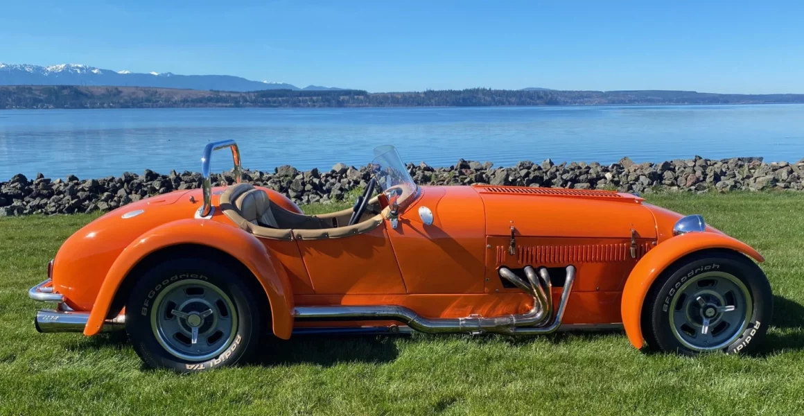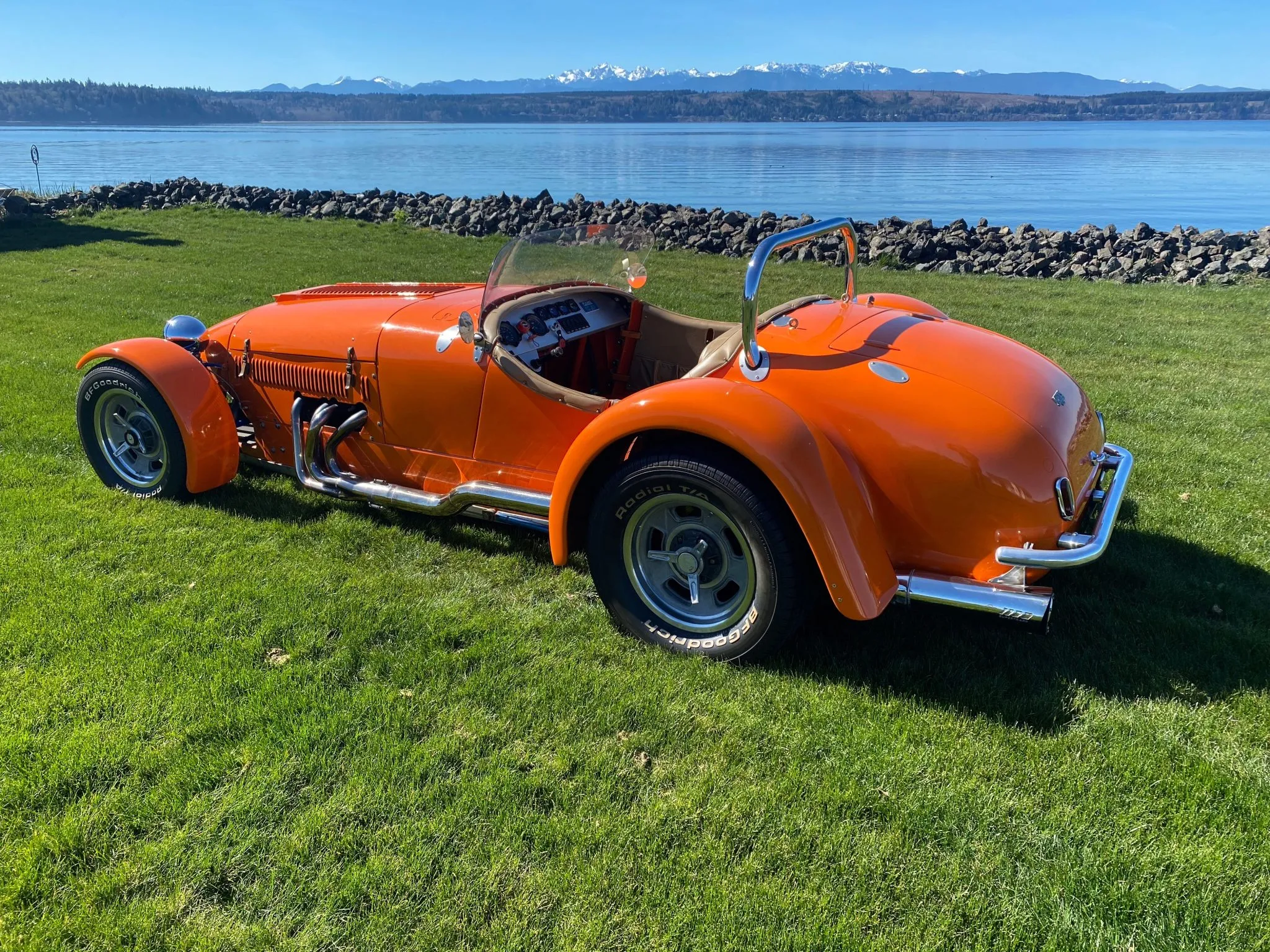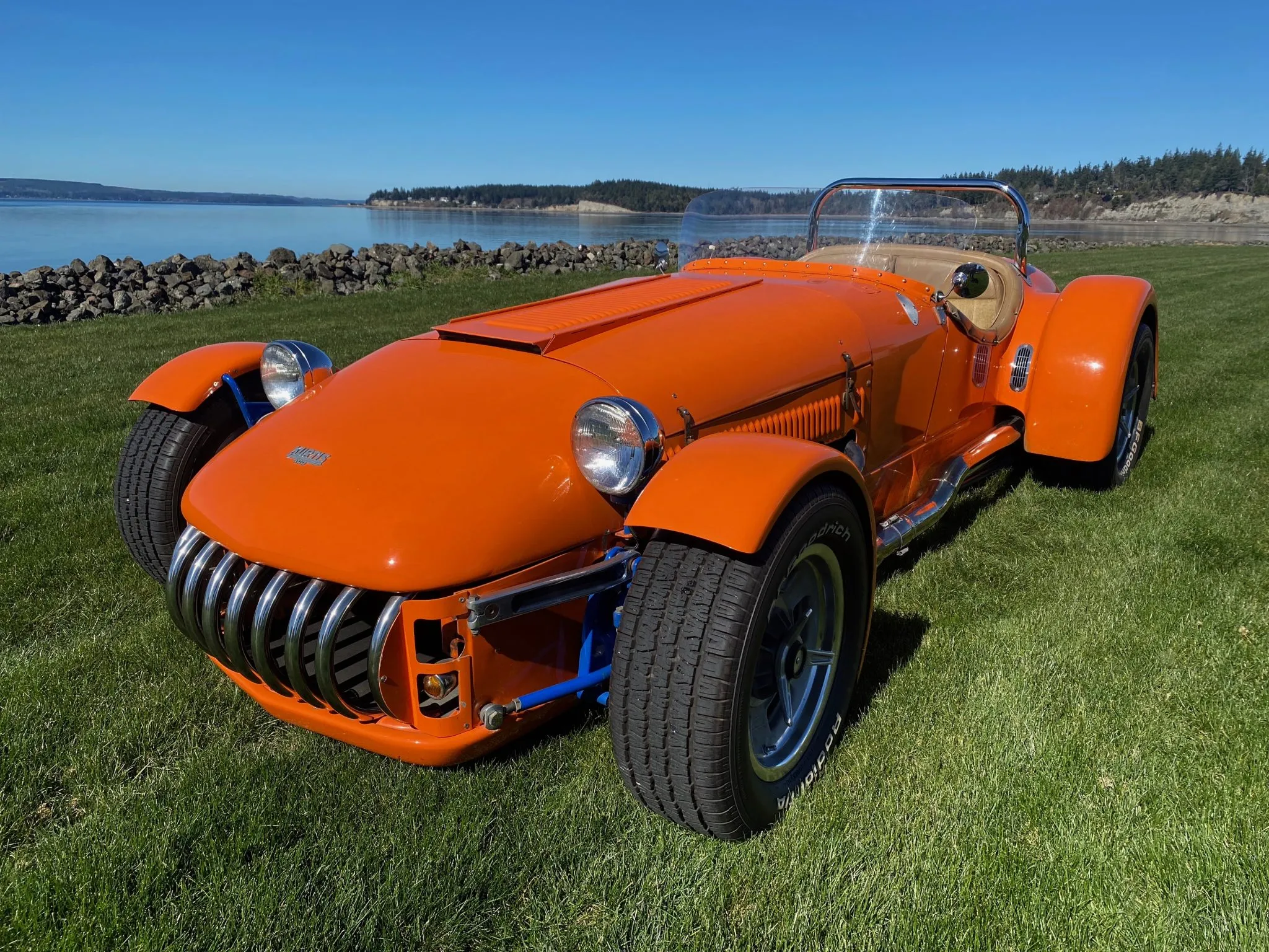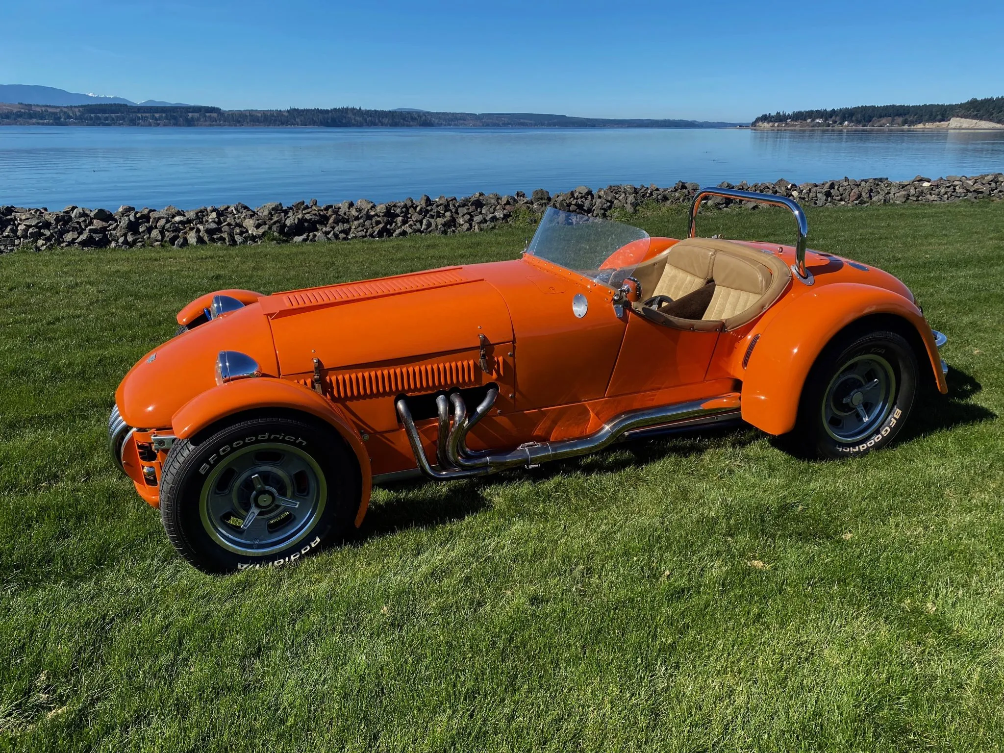 Une transmission manuelle Keisler RS500 à cinq vitesses, un arbre de transmission de remplacement, un différentiel SuperMax Speedway Engineering, une batterie qui tient sa charge et un arceau de sécurité chromé récupéré d’une autre réplique accidentée dans le même course. La carrosserie en fibre de verre a été “arrangée” et repeinte en orange sur une sellerie beige, le moteur en récupération vient d’une Corvette C3 volée au Brésil, un vieux V8 Chevy 350ci. L’équipement supplémentaire comprend un carburateur Rochester Quadrajet, un allumage électronique MSD, et un radiateur en aluminium.
