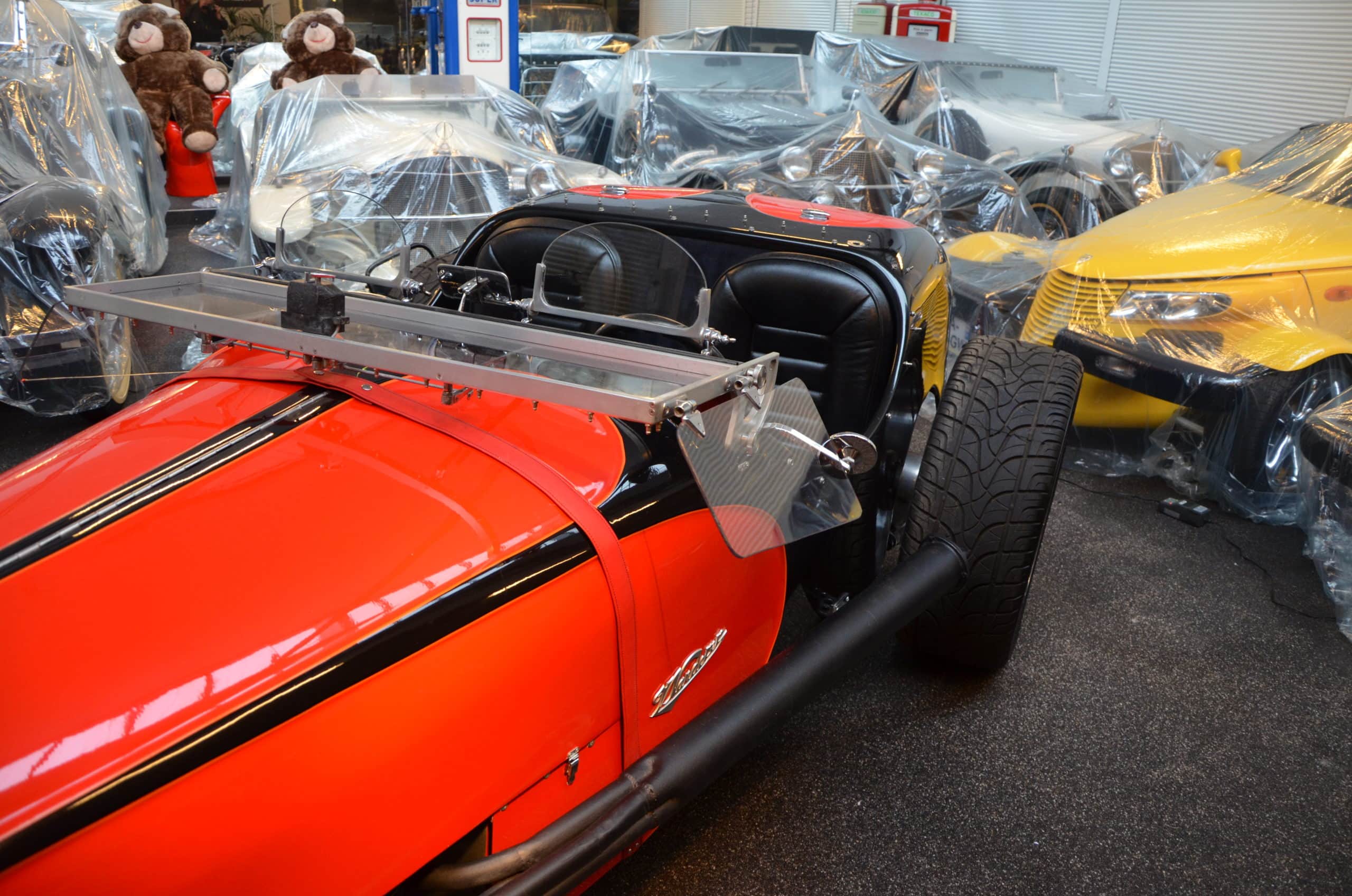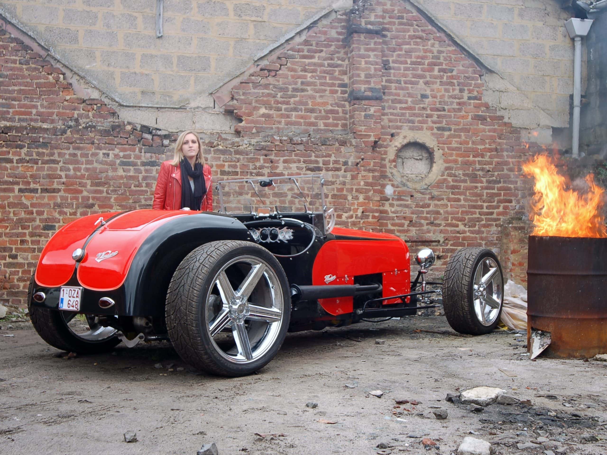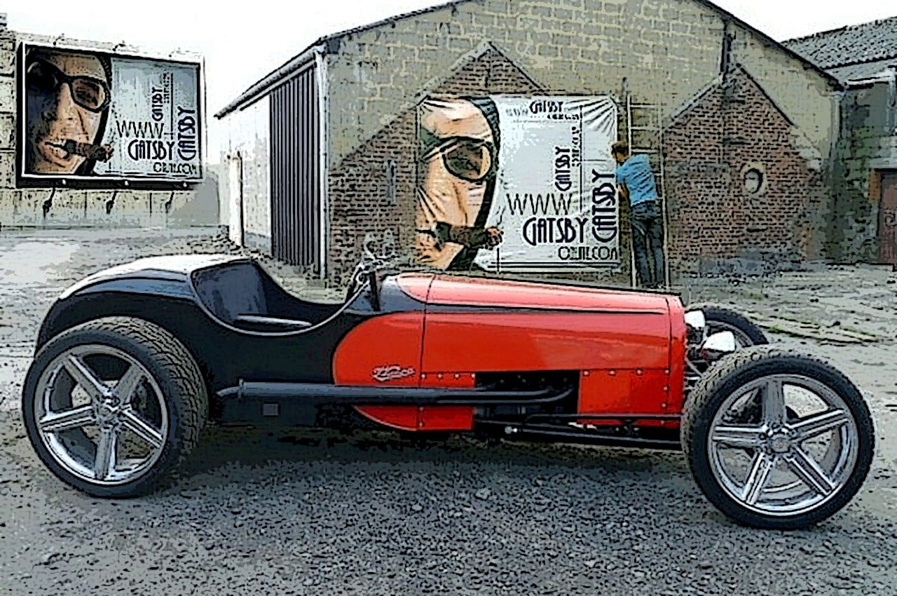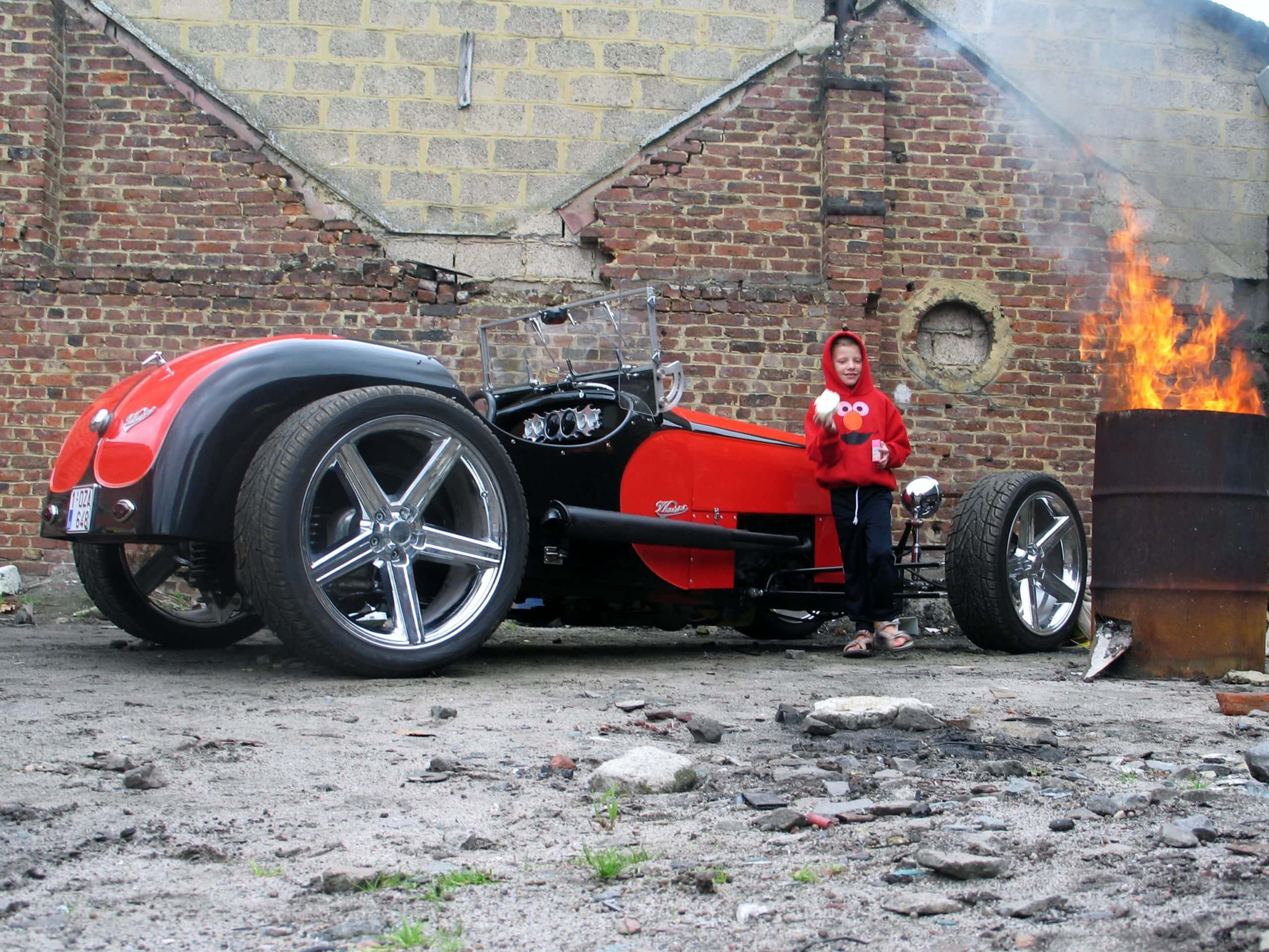 Charlie, suite à notre conversation téléphonique de ce jeudi 6 octobre 2011 11h30, je vous transmets quelques photos d’un de mes Hot-Rods, en finitions. La base est un châssis Jaego de 1980 type “T”, moteur Buick V8 3L5, carrosserie Roadster avec pare-brise rabattable + capote. Jantes 22 et 24 pouces, train AV rigide type “T”, train AR Jaguar XJ6, freins à disques-servo 4 roues. Accessoires et accastillage, compteurs, rétros et divers : Harley.
