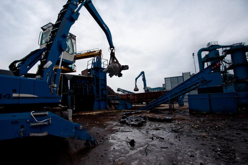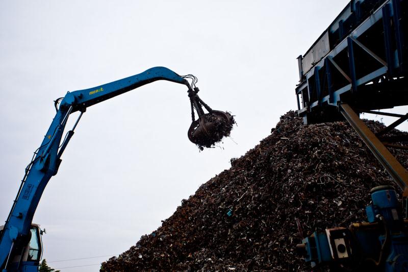Au milieu du chantier de quatre hectares, un gigantesque broyeur de marque allemande (Metso Lindemann) concasse et déchiquète quelque 50.000 véhicules par an.