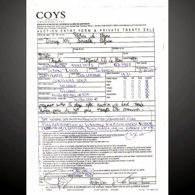 Pour finir cette trilogie d’abominations…, parce qu’une Chrysler inscrite pour 50.000 euros selon un Entry-form signé par les parties… a été vendue pour 17.500 euros sans aucune convention annexe signée de ma part…, d’où un procès interminable (toujours en cours), ou le bureau d’avocat de Coys a osé écrire dans ses conclusions, que le “Coys of kensington Automobiles LTD” du contrat, n’était pas le bon “CKA LTD” (soit les premières lettres de “Coys of Kensington Automobiles LTD”…, mais donc une coquille vide envers laquelle il ne servait à rien de faire un procès, puisqu’il n’y aurait rien à récupérer…, me réclamant en cette suite 2.000 euros d’indemnités de procédure !