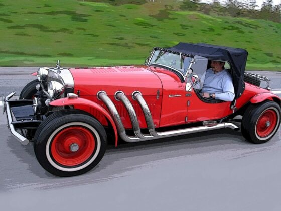 Je reste donc coi dans un recoin stratégique en observant l’évolution des choses, ne me mettant en branle (ce n’est pas sexuel) que lorsque certains tentent d’emporter une pièce en souvenir ou de manœuvrer la capote (ce n’est pas sexuel non plus), voire de tester la solidité des pneus en leur donnant des coups de pieds frénétiques… il doit sûrement y avoir un lien psychologique, une explication rationnelle pour ce qu’on les gens à toucher les carrosseries des voitures, comme s’ils caressaient le corps d’une femme… dans ces cas, j’ai l’impression d’être le souteneur (le mac) de mes “belles” voitures !