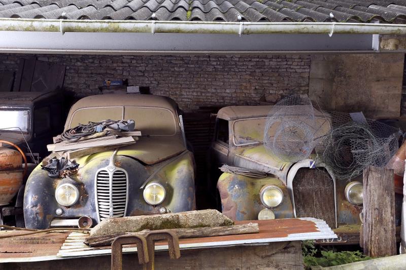 Et pas qu’un peu : 25.151.580 €uros pour cinquante-neuf carcasses mythiques exposées là…, sur toutes les bagnoles, une crasse d’époque ou on espère découvrir l’ADN de Roger Baillon…, qui, dans les années 50-60, a sauvé de la casse des dizaines de voitures qu’il achetait par lot, au poids, dans toute la France…, ce patron des Deux-Sèvres parti de rien qui a fait fortune dans les transports leur a consacré sa vie…, sa faillite en 1978 a sabré son rêve de musée, mais va rendre ses héritiers multimillionnaires…