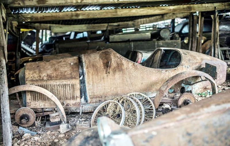 – Matthieu Lamoure, directeur d’Artcurial Motorcars : Ce fut un sentiment assez indescriptible. Lorsqu’on a franchi le portail de cette propriété, Pierre et moi, on ne savait pas ce qu’on allait trouver. Il a fallu qu’on fasse le tour pour aller dans le parc, à l’arrière de la propriété, pour commencer à avoir un premier aperçu. Sur trois hectares, il y avait différentes structures de bric et de broc. Des abris en tôles métalliques. Là, on s’est rendu compte que l’on était face à quelque chose d’important. On ne savait pas encore de quoi il s’agissait, mais on devinait des carrosseries, usées par le temps et les intempéries. Des formes modernes, d’autres plus anciennes.