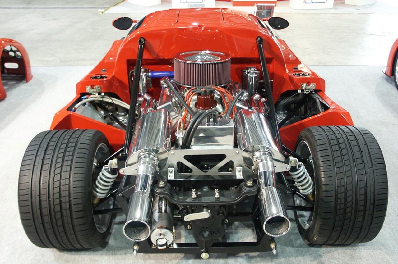 Un moteur disposé de façon centrale, avec une boîte en bout, c’est-à-dire repartant vers l’arrière de l’Ultima.