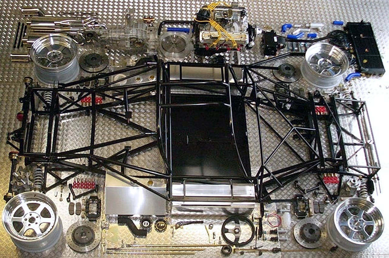 Succinctement, il fut dit, vingt fois, trente fois peut-être, inlassablement sûrement, que la carrosserie des Ultima était en polyester renforcé aux endroits stratégiques par de la fibre de carbone (le premier prototype fut cependant réalisé entièrement en bois)…, cette dernière abritant un châssis tubulaire à section carrée…, des traverses-maison permettaient l’adaptation d’un train avant venant d’une Ford Granada (variante possible, celui d’une Cortina série 3) et d’un train arrière de Renault 30.
