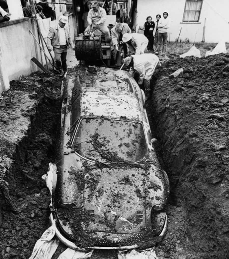 Quiconque face à une telle histoire, imagine et s’attend à ce que des corps momifiés dans des feuilles de plastique et des serviettes en peluche d’où des vers de terre sortent, vont être retrouvés quelque part, enterrés pas très loin de la voiture…, mais rien de cela ne fut découvert…, c’est le vol de la Ferrari Dino qui a été enterré !