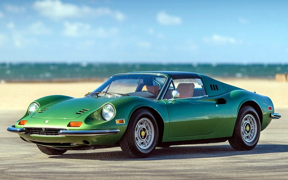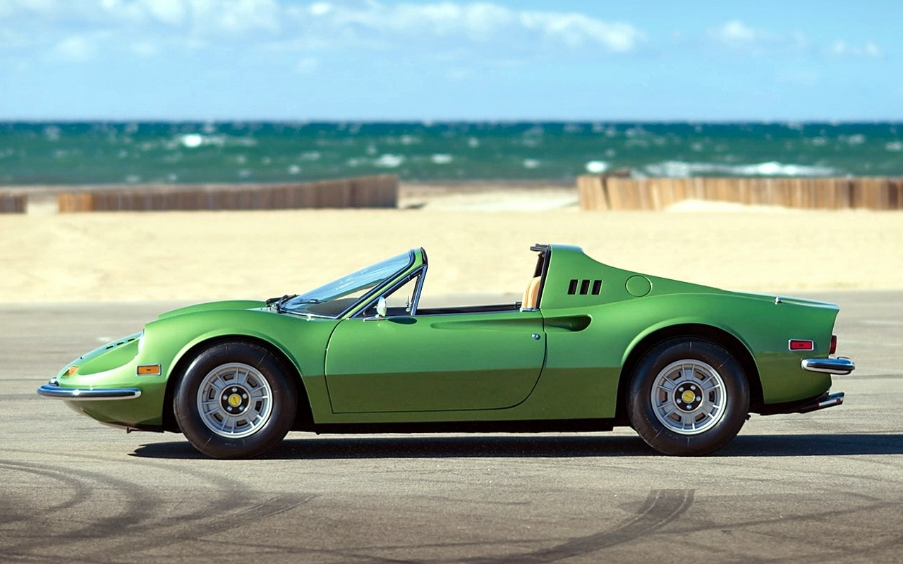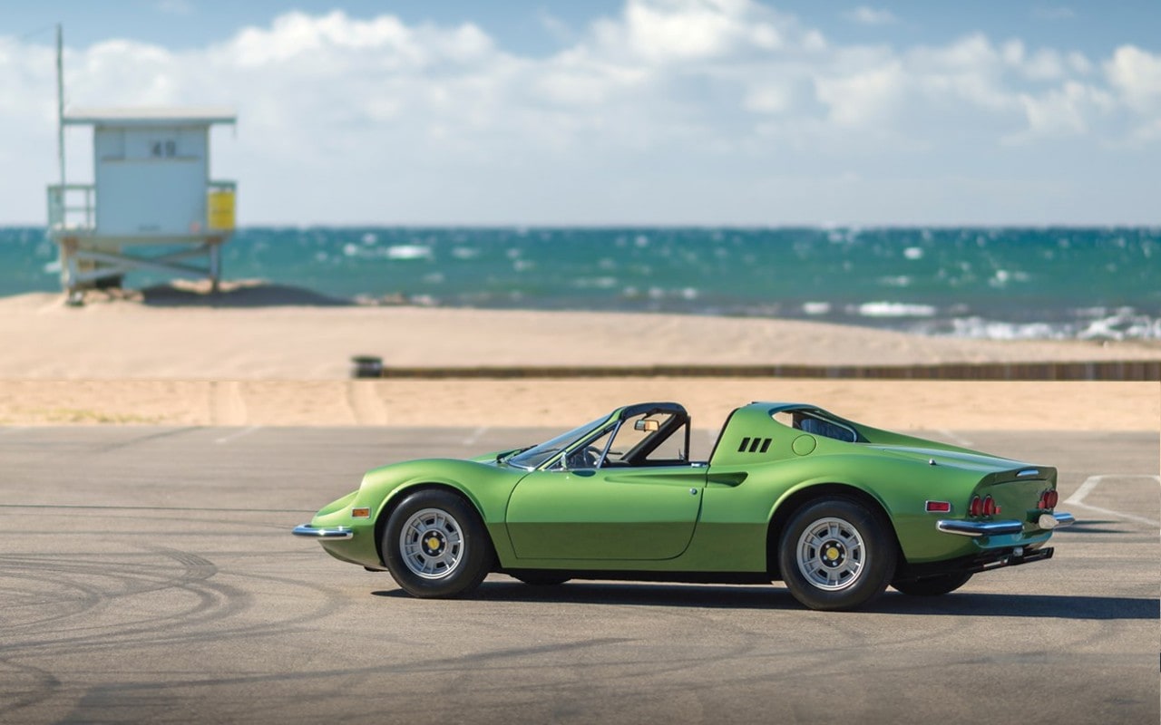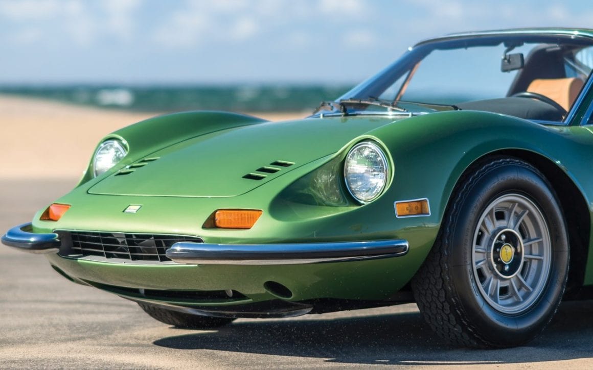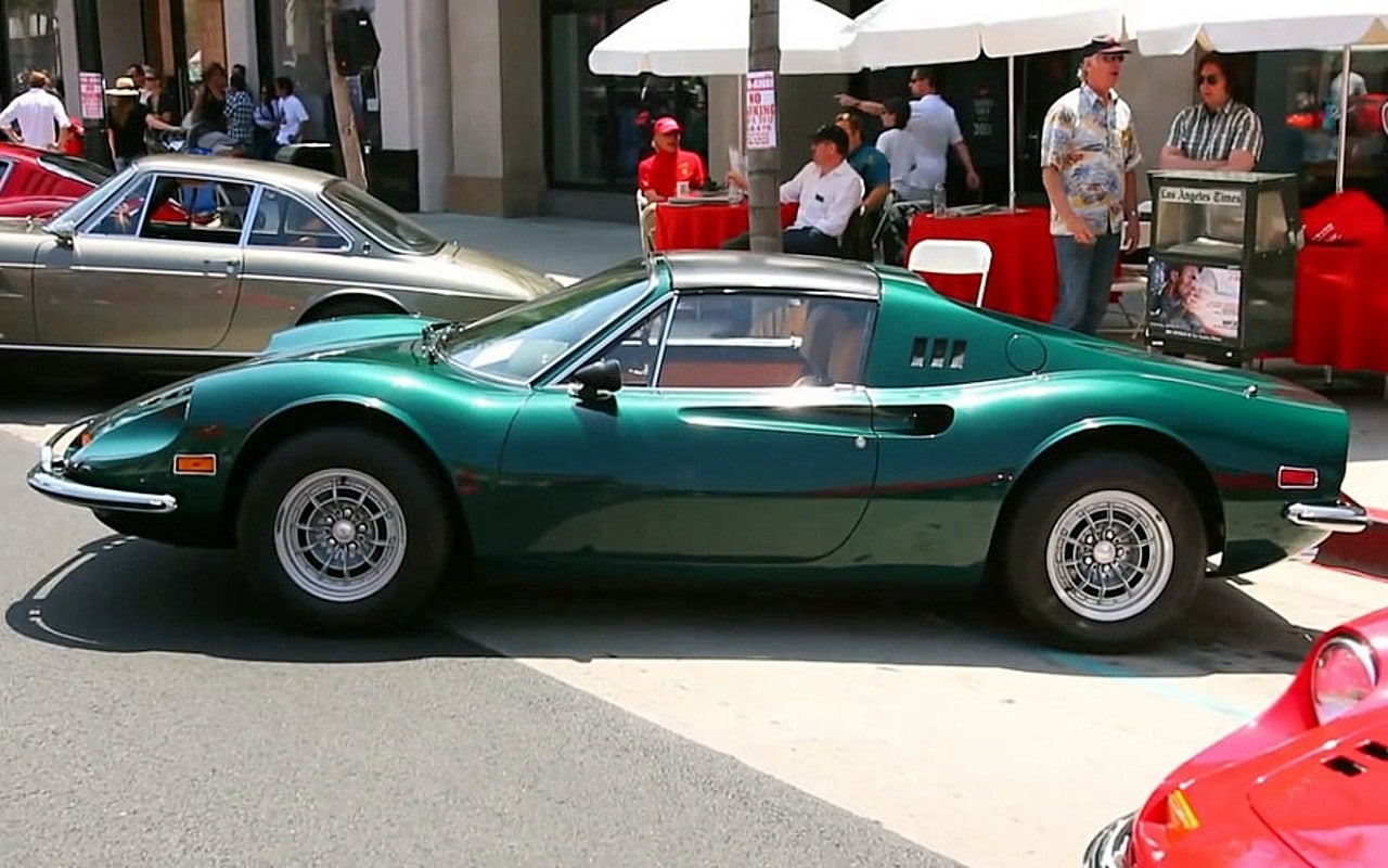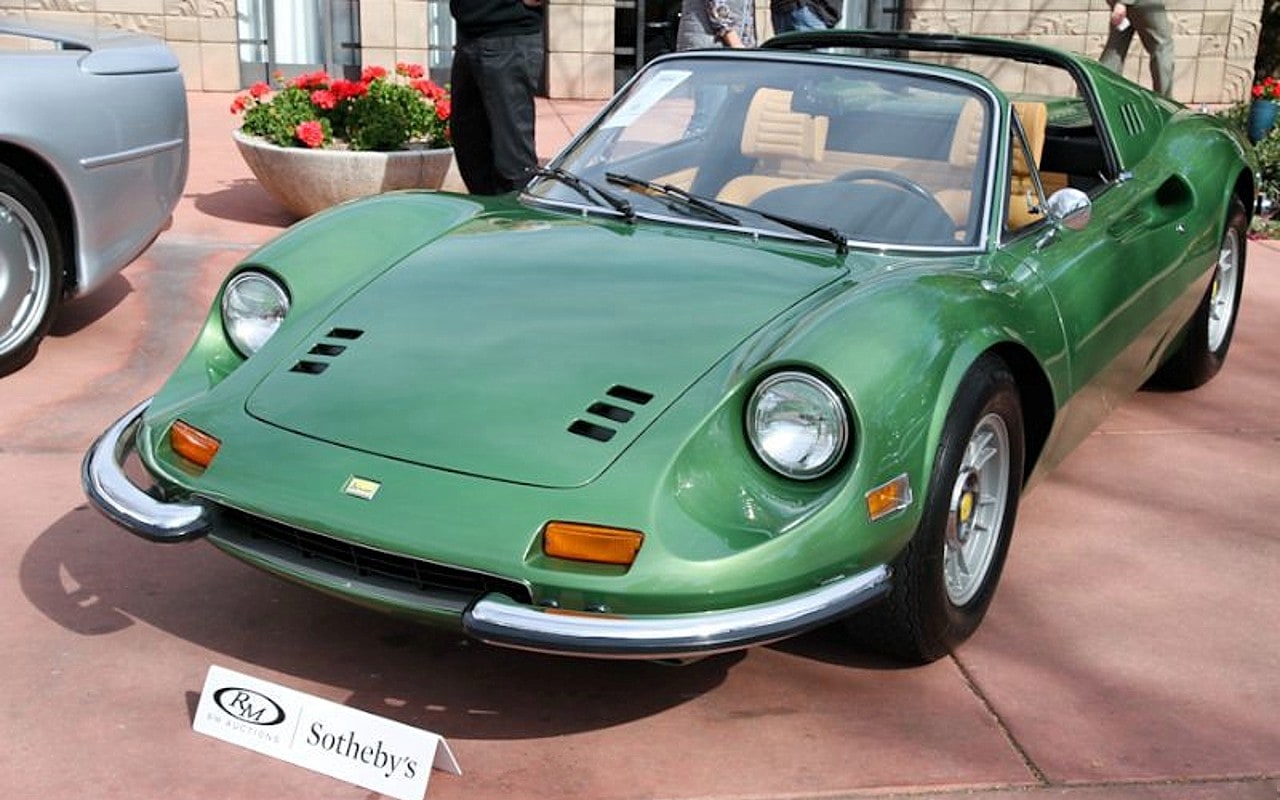 En 2014, la Dino 246 GTS a été restaurée dans “sa couleur d’origine”, le fameux et rare “Verde Medio Nijinsky” et la Dino a été acquise par un collectionneur anonyme de Maranello vivant à Los Angeles (sic !)… qui l’a “mécaniquement rafraîchie” avec une reconstruction complète du moteur…, présentant environ 8.700 miles, qui sont censés être d’origine (sic !), et la Dino est accompagnée de livres et d’outils (re-sic !), cette Dino 246 GTS magnifiquement restaurée et historiquement fascinante (c’est le moins qu’on puisse en dire et en écrire) a été présentée comme étant un exemple sensationnellement préservé (re-sic !) “qui devrait ravir les sens de tout amoureux de Dino 246 GTS verte”…