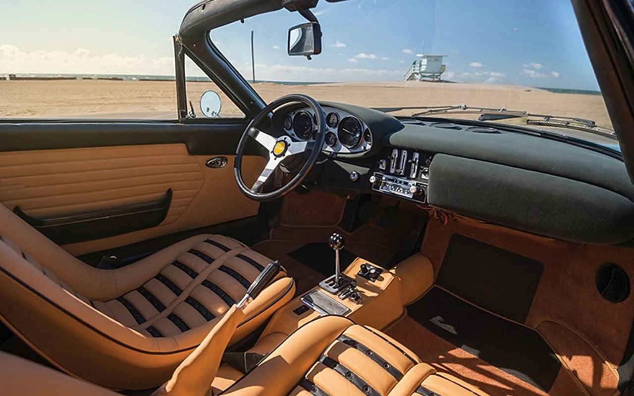 Initialement commandée chez Ferrari en Italie par Modern Motors Classic Reno-Nevada, la Ferrari-Dino avait été transportée d’Italie vers les USA, en même temps que 10 modèles similaires, au garage “Motors Griswald” situé dans la baie de San Francisco.