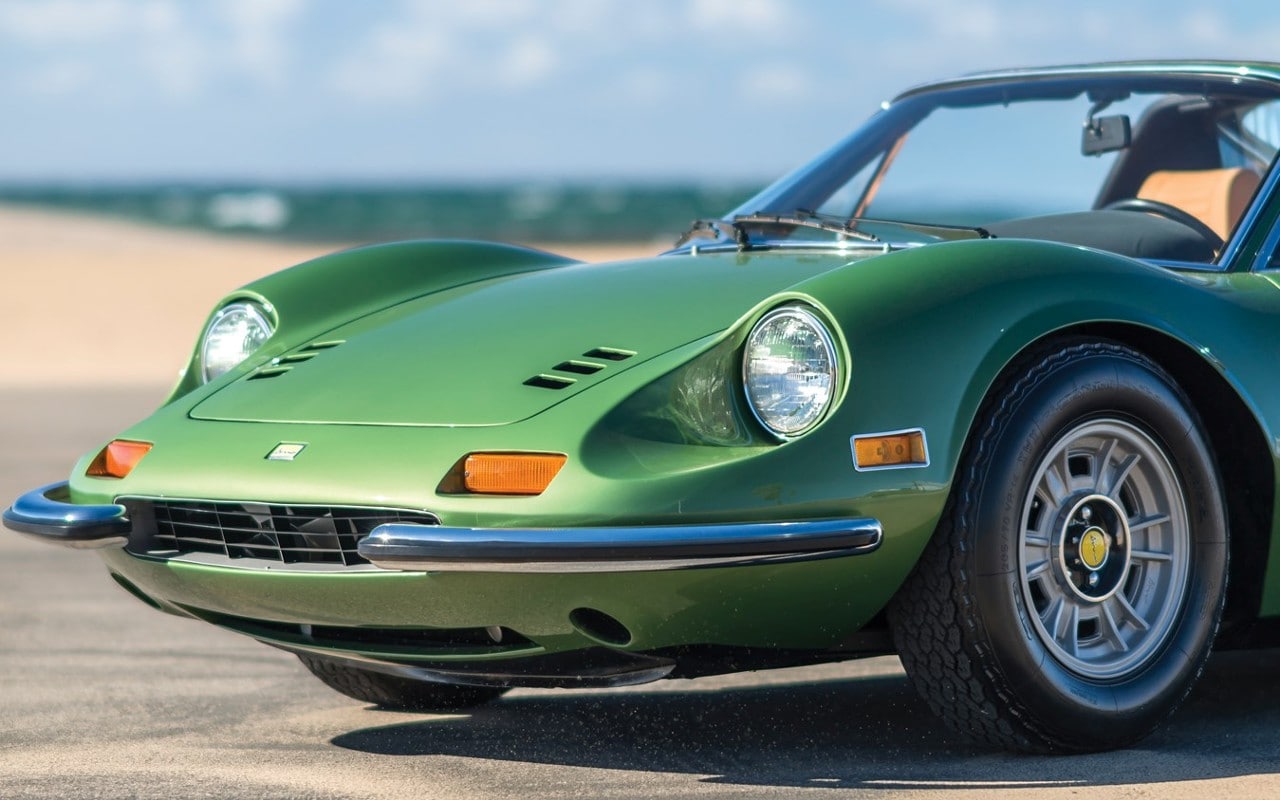 A dépiauter ces cadavres pourris et puants, on s’aperçoit qu’à moins que les deux Dino aient été la même auto, on a affaire à un phénomène extraordinaire et unique de clone quasi béatifié par le fantôme de Saint-Enzo en personne…, les deux Dino (n’étant vraisemblablement qu’une seule)…étant de rarissimes GTS, comptant parmi les 25 dernières fabriquées… et peintes l’une et l’autre du même “Verde Medio Nijinsky”, une nuance spéciale de vert métallisé…, les deux étant équipées de série de la même climatisation d’usine, des mêmes vitres électriques et des mêmes sièges Daytona avec inserts Nero, positionnés dans le même habitacle beige… et… Sothebys de préciser que la Dino GTS était considérée comme l’une des trois seuls exemples peintes de cette couleur d’usine inhabituelle…, spécifiant que c’était également la seule GTS peinte en vert…
