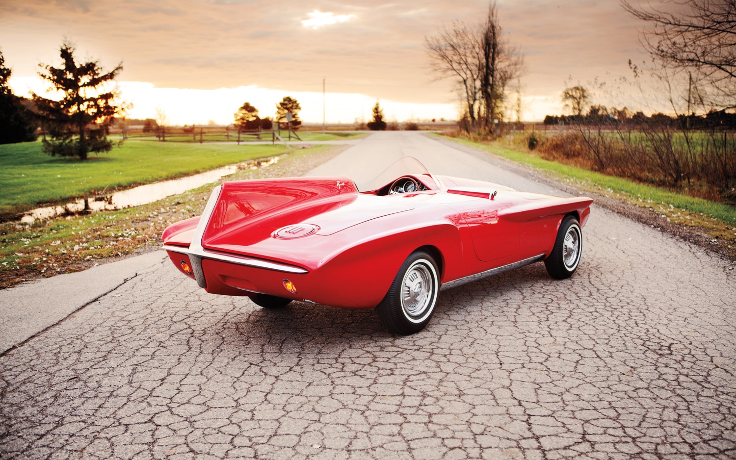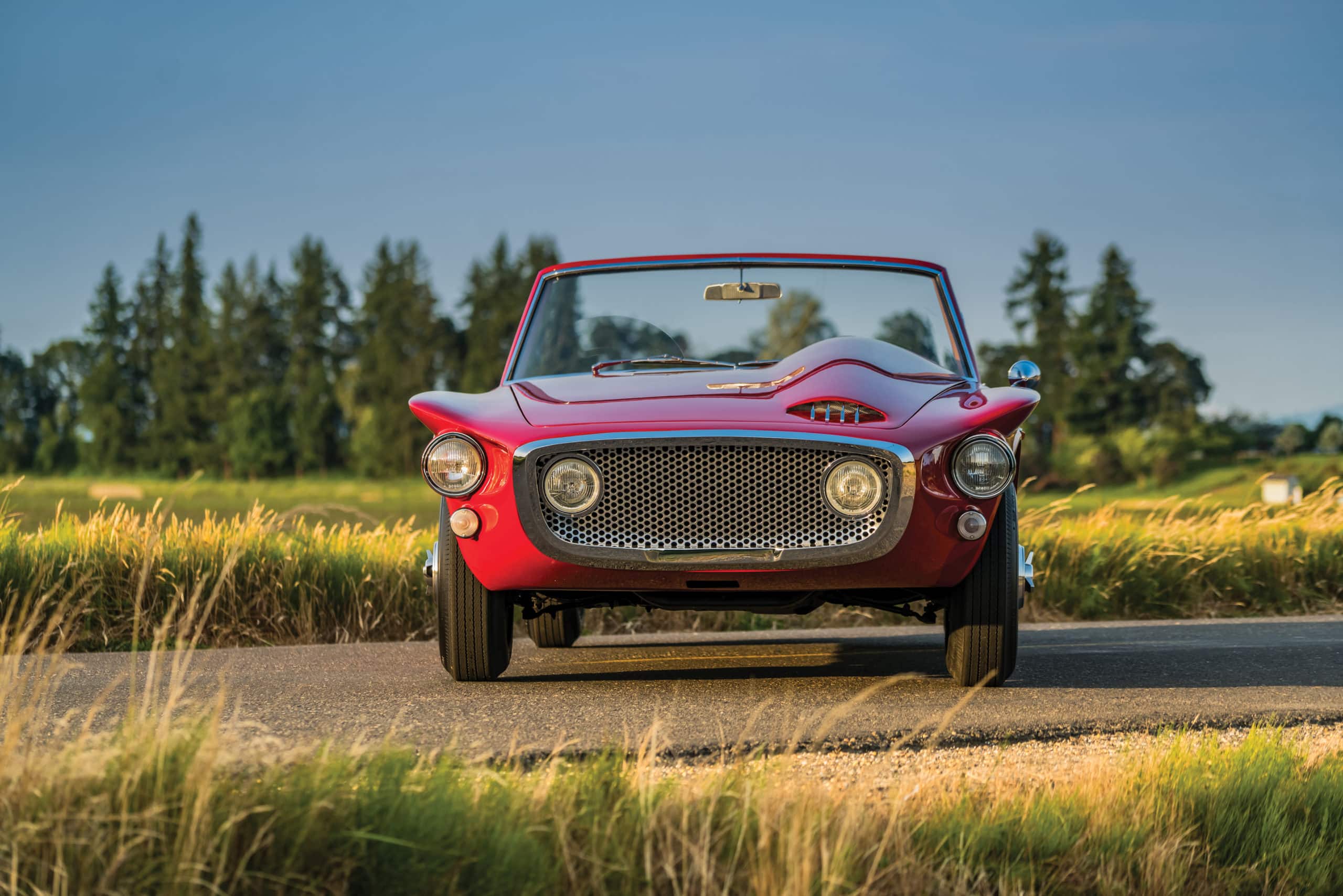 Avec ses nageoires dramatiques et les puissantes options de son moteur en fureur perpétuelle, l’ex-giroflée avait été amorcée pour aplatir Ford et Chevrolet, la prochaine étape devant être une voiture de sport qui n’a pas été longue à venir, car la couverture de mai 1960 du magazine américain Motor Trend, présentait un radical roadster rouge avec ce titre dramatique :