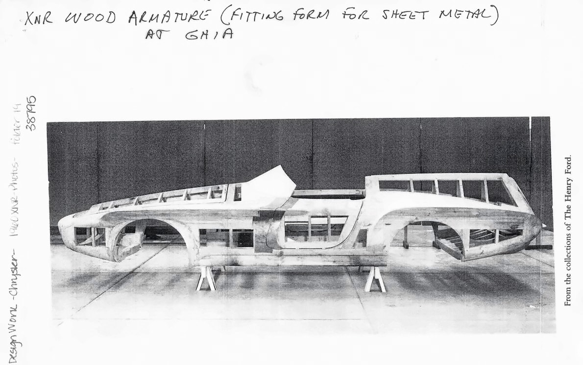 Le châssis Valiant a donc été modifié et ensuite envoyé à Turin où les artisans de Carrozzeria Ghia ont construit une armature, puis y formé la carrosserie XNR en acier, d’après les dessins de conception d’Exner.