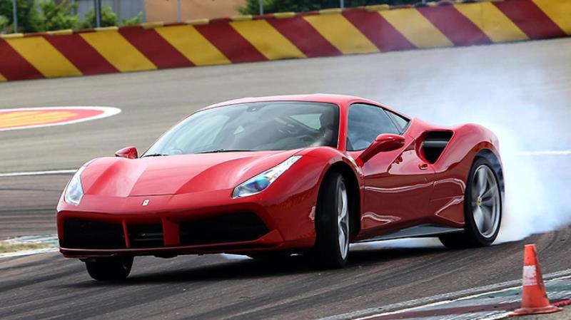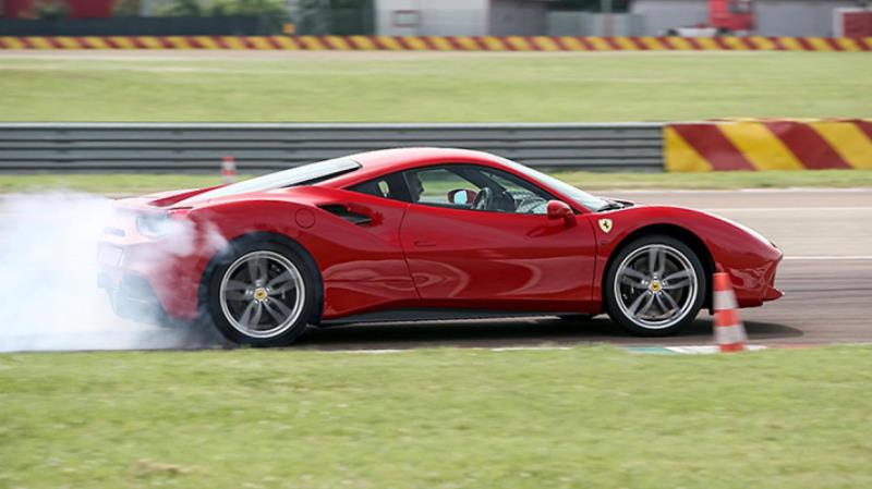 Je me suis retrouvé en travers quand-même… et j’ai trouvé que c’était dangereux…, car la Ferrari 488 GTB abat le 0 à 100 km/h en seulement 3 secondes, accroche les 200 km/h en 8,3 secondes et atteint 330 km/h en vitesse maxi…