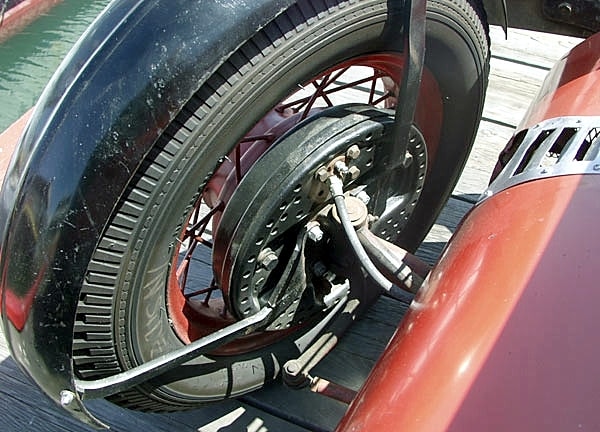 Le moteur “FlatHead” de Deuce (21 goujons), fait battre plus rapidement le cœur de n’importe quel Hot-Rodder américain à sang rouge, c’est “LE” collector ultime, il a été fraîchement reconstruit en 2002, parfaitement équilibré en utilisant les meilleurs équipements “pour la vitesse” à l’ancienne (sic !) disponible… et l’arbre à cames ISKY 3/4 remue un peu plus “les choses”, qu’un ordinaire…, tandis que le double 97 Stromberg’s attaché au fameux “Eddie Meyer Hollywood Manifold”, alimenté par une pompe d’aviation BENDIX, livre le mélange d’essence combustible…, n’oublions pas les roues fil de Ford 1935 qui sont chaussées d’un ensemble de pneus DENMAN presque neufs en 5.25/5.50-17.., le système de freinage hydraulique ayant été réalisé au départ d’un Ford’40…, “The Bomb” est muni d’un pare-chocs avant de Lincoln Zephyr ’41 et de phares provenant d’un camion GM.