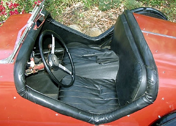 Le dashboard (tableau de bord) est un heureux pot-pourri de compteurs composé d’un “Mano de vitesse” de Ford ’33, d’un ensemble de jauges carrées récupérés d’une Ford 1940 et d’un couple de cadrans de provenance indéterminée…, le volant vient d’une Ford DeLuxe 1937 avec un bouton de klaxon datant de 1932…, tandis que les sièges (inconfortables) sont en Naugahyde noir original (donc réalisé à partir de la peau de l’insaisissable Nauga).