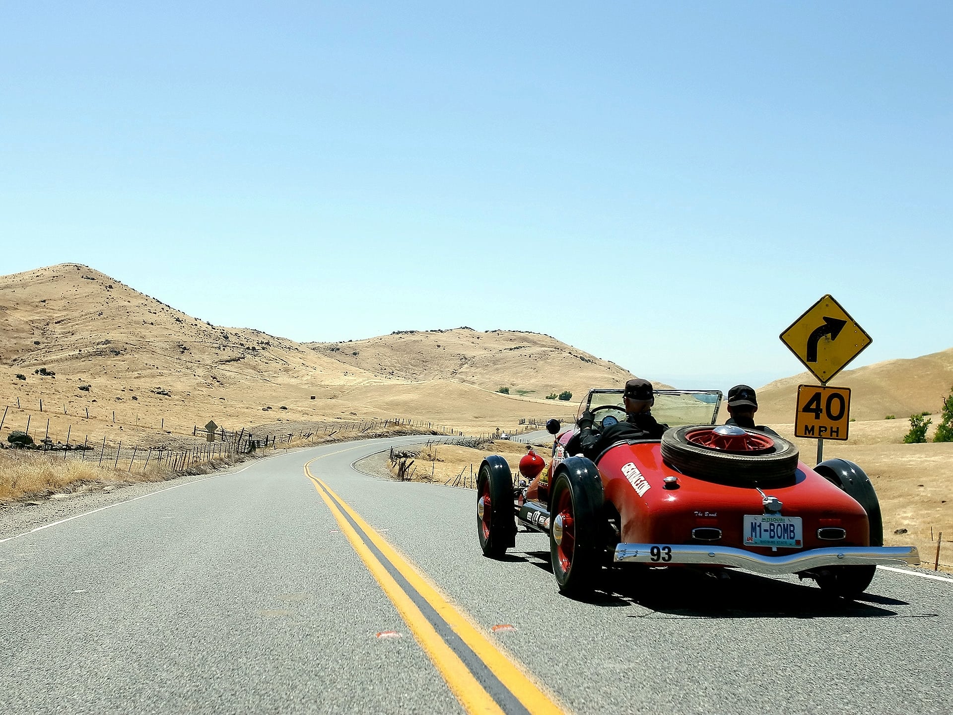 Ce qu’il y avait de bien pour lui à courir cette “Great-Race“, c’était qu’il n’y avait pas de règles, sauf celle de s’acquitter de 75.000 US$ pour s’y inscrire, ce n’était ni un “Cannonball“, ni un “Gumball-Rally“, c’était la “Great-Race“, inspirée d’un vieux film “La grande course autour du monde“, lui même s’inspirant de la Grande course du début des années 1900…, un bazar de fondus déjantés…, courir sur un circuit, c’était moins amusant que courir sur routes ouvertes pour défier toutes les lois applicables, quoique le parcours passait sur un circuit : le Laguna Seca….