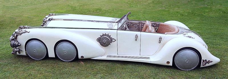 Cette voiture spectaculaire. mesure 9m25 de long et 2m50 de large, elle n’est pas adaptée à la circulation et n’est pas légale pour une utilisation sur route, mais elle fonctionne encore très bien et conserve la plupart de ses fonctionnalités d’origine…, je n’ai pas résisté à la conduire sur départementale déserte et ai réussi l’exploit d’atteindre 120 km/h à l’heure en accaparant superbement toute la route ! La voiture a été présentée dans quelques salons automobiles : Essen en Allemagne et à Londres au Royaume-Uni d’Angleterre…, elle a également participé à quelques défilés dont la célèbre Parade du “Seigneur-Maire” à Londres.