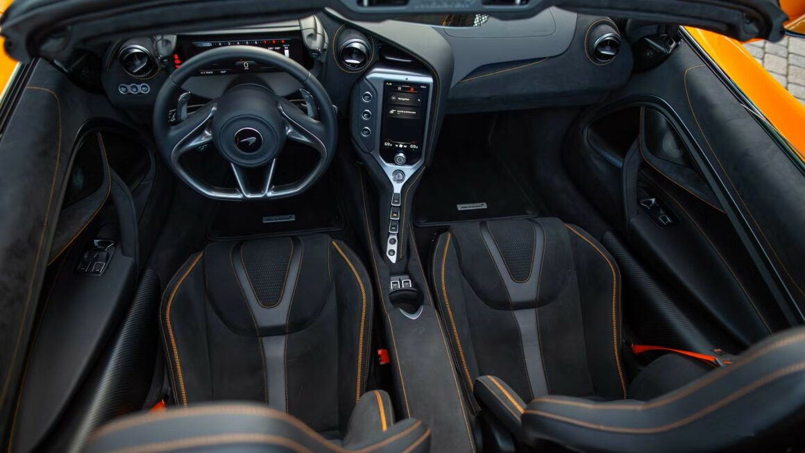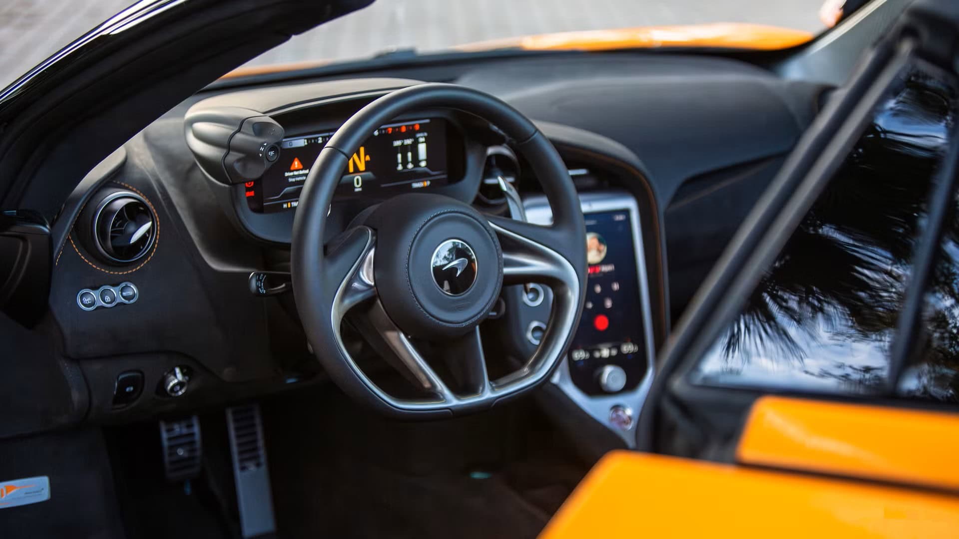 … “S’il y avait une urgence et que vous deviez vous y rendre immédiatement, la 750S dispose d’une aide à la conduite avec un répertoire des meilleurs et hôtels. En dehors de la ligne, la 750S est douce et contrôlée. Avec le toit abaissé, vous pouvez vraiment entendre l’échappement de la console centrale, ce qui donne une belle symphonie de sons sur toute la ligne. J’ai gardé la 750S en mode Sport la plupart du temps et j’ai passé beaucoup de temps dans la circulation. La climatisation est un rêve. L’intérieur de la 750S Spider est très confortable. McLaren a utilisé des matériaux de haute qualité. La technologie de la McLaren 750S Spider 2024 est simple. Les écrans sont réactifs et faciles à parcourir. En conduisant, je n’ai eu aucun problème à connecter mon téléphone via Apple CarPlay et Bluetooth. Les graphismes étaient clairs et faciles à comprendre. Le toit rigide rétractable monte et descend en 11 secondes. J’ai testé cela, et c’était vrai à la fois pour monter et descendre le toit. Je l’ai testé en stationnement et en me déplaçant à basse vitesse et je n’ai eu aucun problème”…