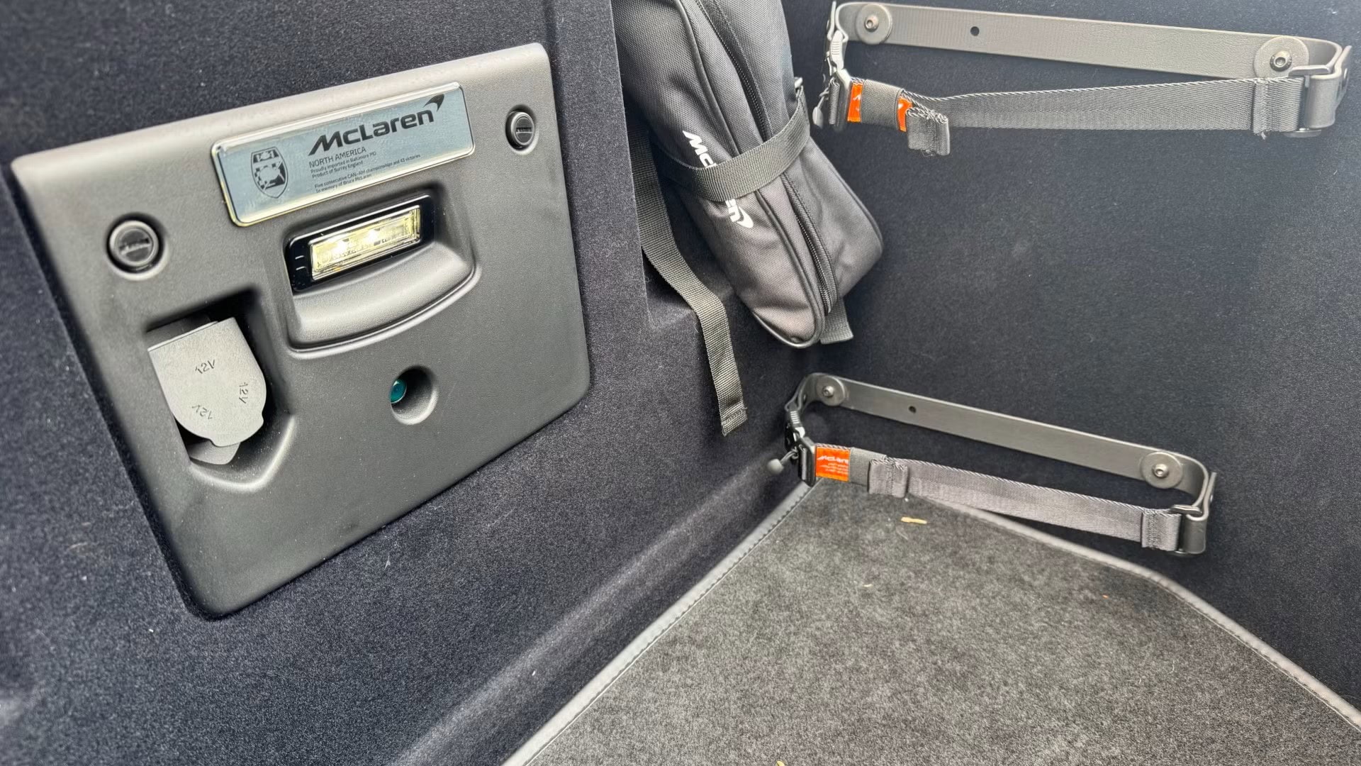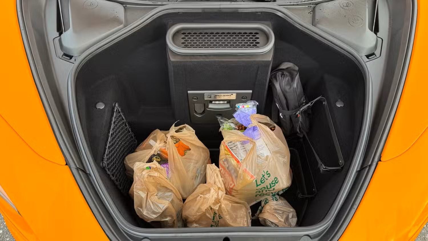 … “Quelques boutons sont placés au centre pour faciliter l’accès. Le bouton aérodynamique engage l’aérodynamique active, tandis que le bouton McLaren Speedy Kiwi permet d’enregistrer une conduite, une suspension et une configuration aérodynamique préférées. Cela fonctionne comme un préréglage radio : réglez tout où vous le souhaitez, puis appuyez longuement sur le Kiwi pour enregistrer. En dessous se trouve le bouton de contrôle de lancement. L’option de toit électrochromatique permet aux occupants de basculer le vitrage suspendu entre deux modes. Lorsque le verre est retiré, 95 % de la lumière est bloquée, ce qui rend le toit pratiquement opaque et laisse entrer moins de 0,1 % de lumière UV dans l’habitacle. À l’état alternatif, le verre bloque 30 % de la lumière entrante, conservant une teinte douce pour la protection tout en créant une sensation plus lumineuse et plus ouverte à l’intérieur. La 750S dispose de beaucoup d’espace dans le coffre qui a pu contenir toutes mes courses strictement sans aucun problème. La McLaren a plus de puissance et de couple avec son V8 par rapport au V10 de la Lamborghini”…