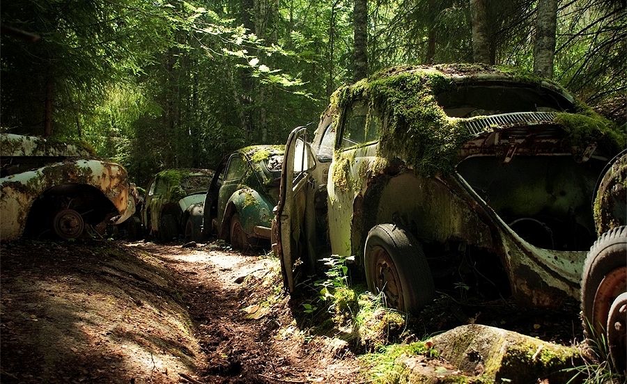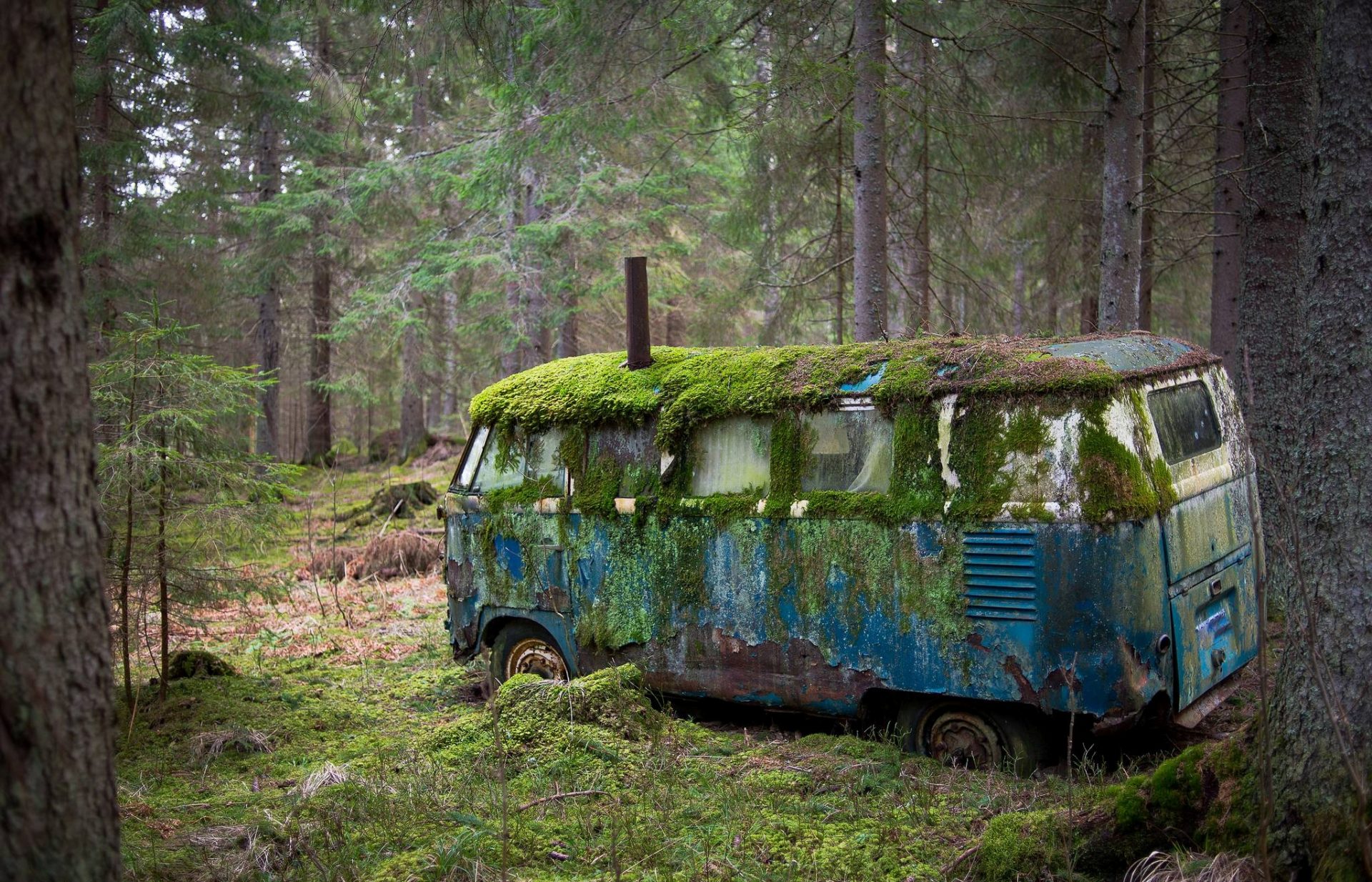 La pétasse moulinait des fesses dans son jean’s troué, près de la voiture, espérant que je la dépose plus loin…, trop jeune, la minette…, mais soudain, tout de go, elle m’a dit qu’elle avait découvert plus loin dans le bois, une épave de VW Kombi Samba…