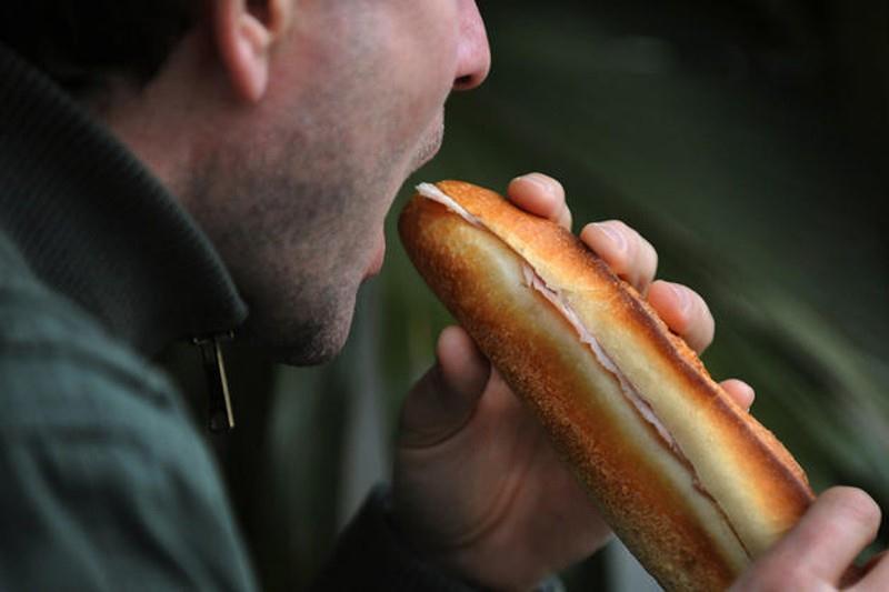 Je pensais ne pas avoir faim, pourtant en les voyant, mon estomac s’est réveillé en sursaut…, je me suis emparé de ce qu’elle m’offrait, avec une certaine reconnaissance…, nous avons mâchouillé en symbiose, cote à cote, ce fut un moment très particulier…, mais pas une grande extase gastronomique, le jambon mouillé était sous vide, le pain industriel sous cellophane, pas de musique, pas de paroles, jusque des respirations et du pain qui croustille.
