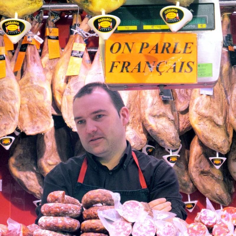 La caissière était une vieille peau toute fripée qui s’est mise à beugler que l’étiquette-codebarre de cette bouffe avait disparu…, puis elle s’est levée et est partie vers le rayon ad-hoc en jurant d’une voix aiguë, tandis que les talons de ses grolles claquaient sur le carrelage…
