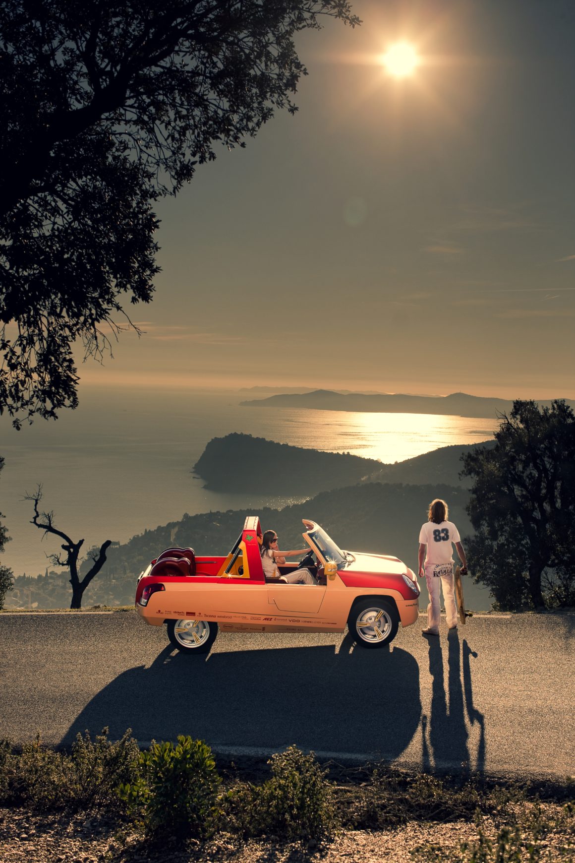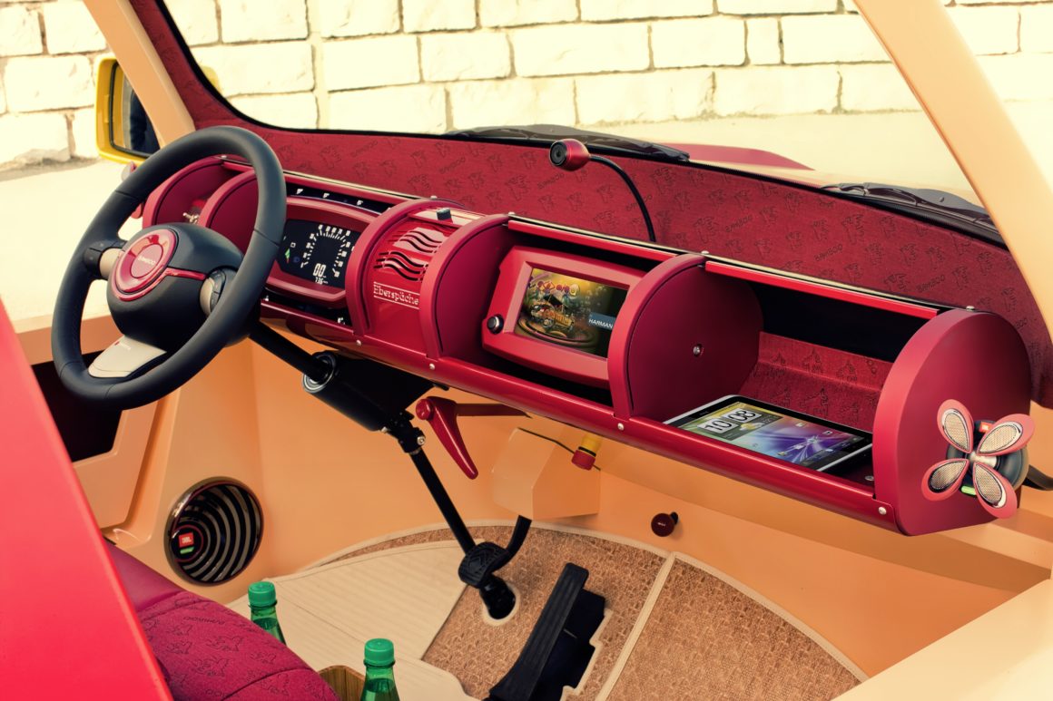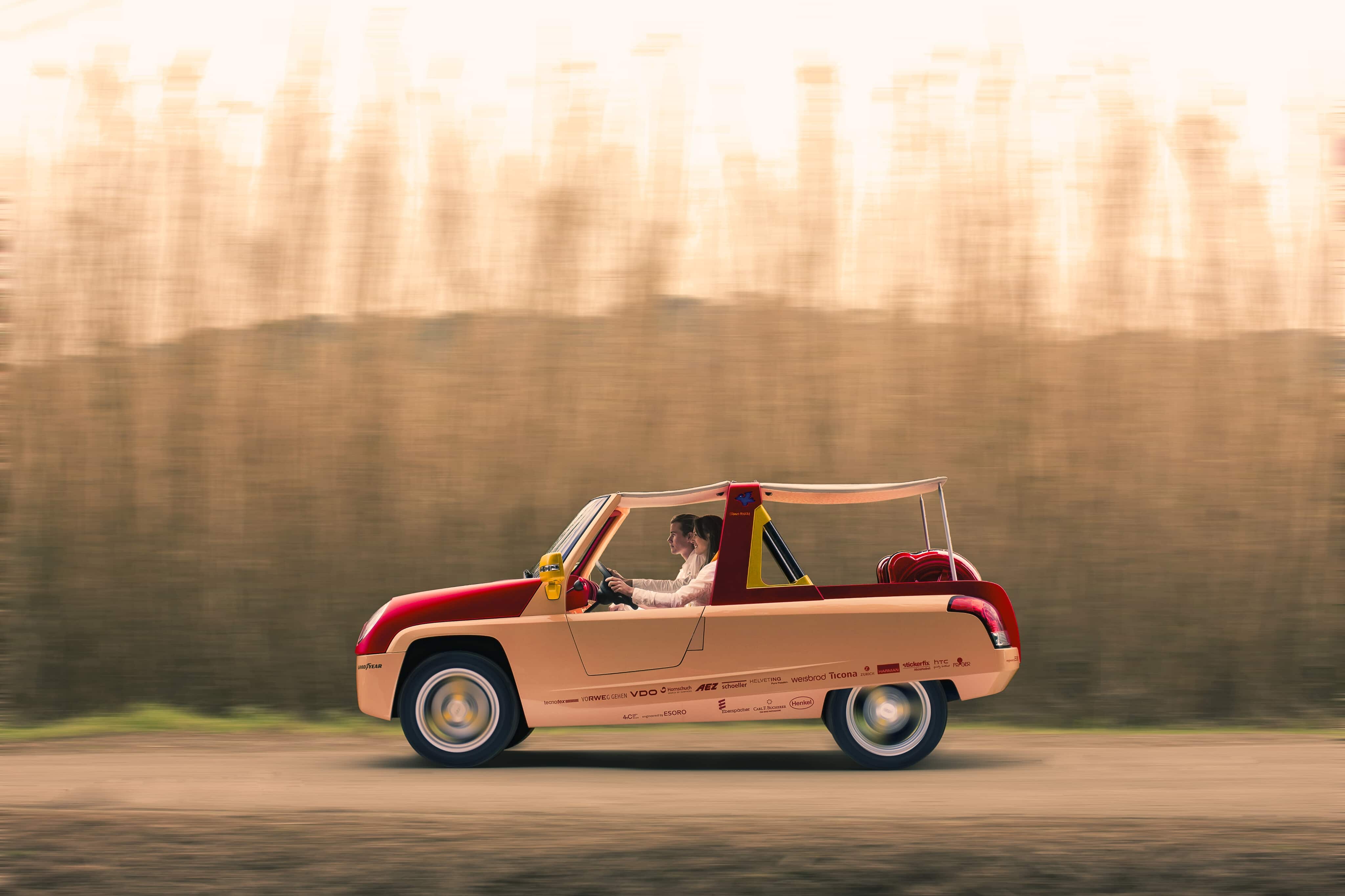 Cette petite quatre places de loisirs ne cachait pas son jeu…, ouverte au grand air, faite pour le soleil, l’été, la lumière et le bon temps… elle revenait aux sources du concept automobile…, un maximum de fibre de bambou, tant dans les constituants du véhicule que dans les détails et la décoration…, un toit gonflable…, mais aussi, pour être en harmonie avec son époque, une propulsion électrique qui ne devait rien à personne.