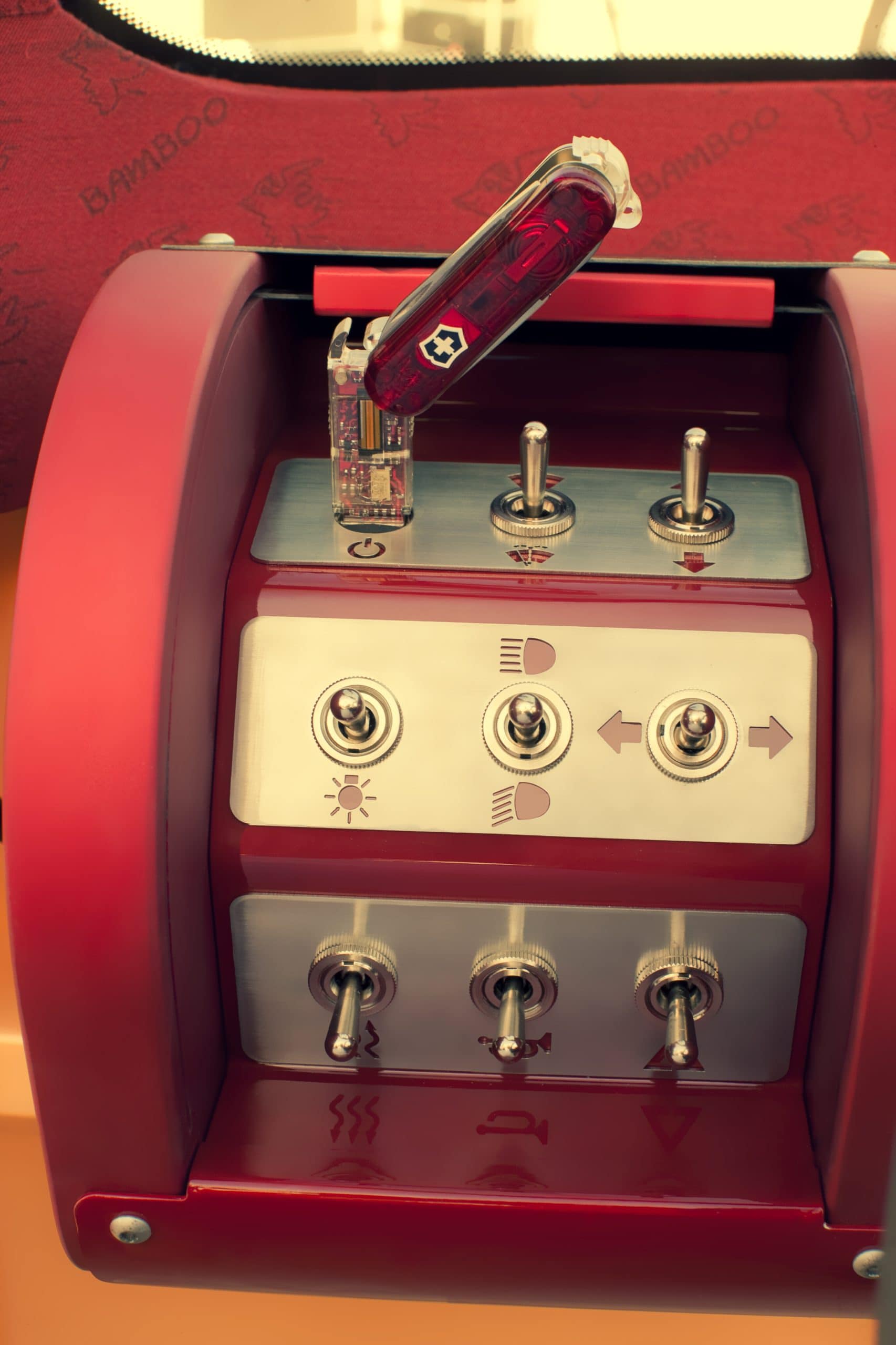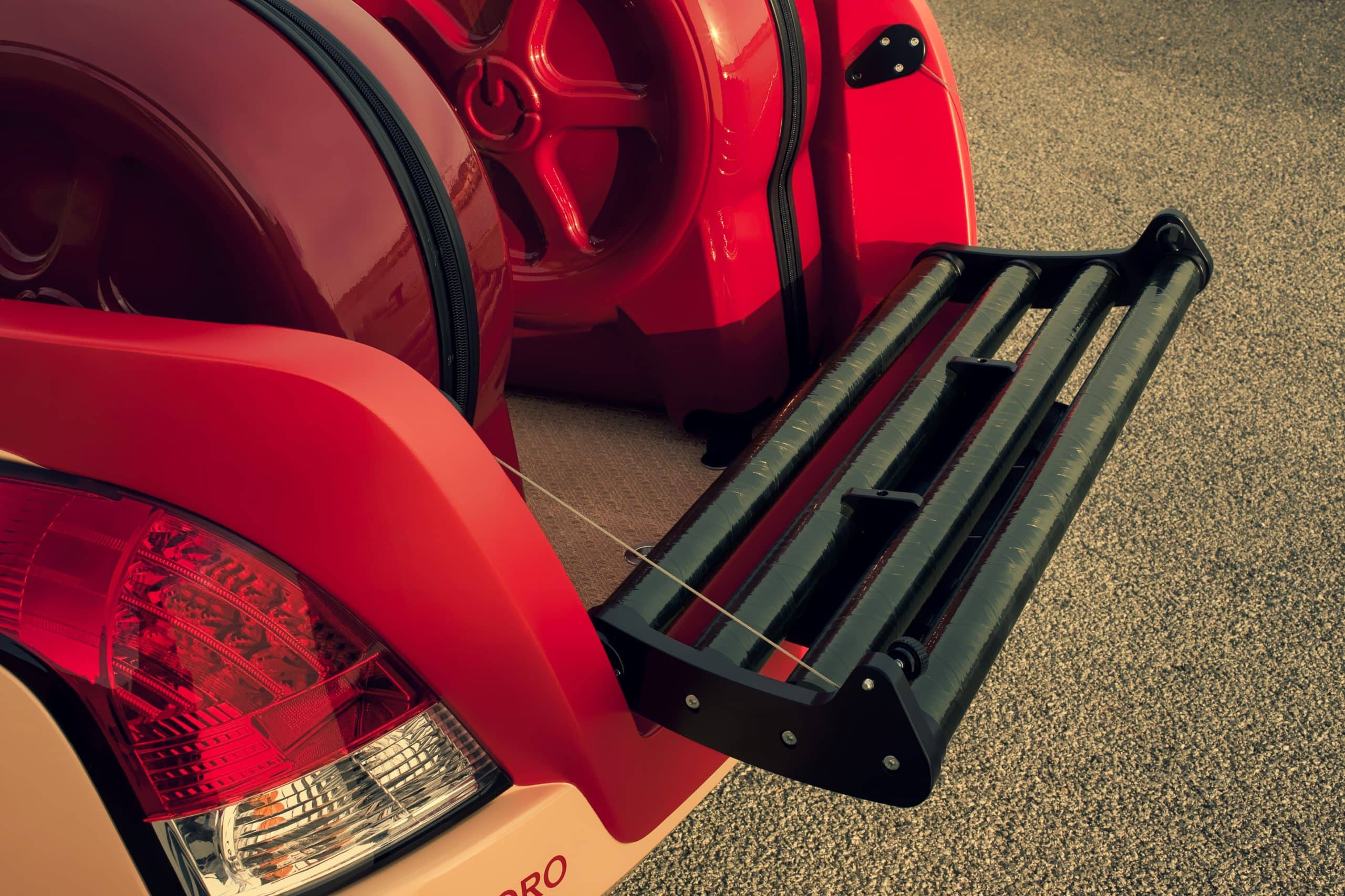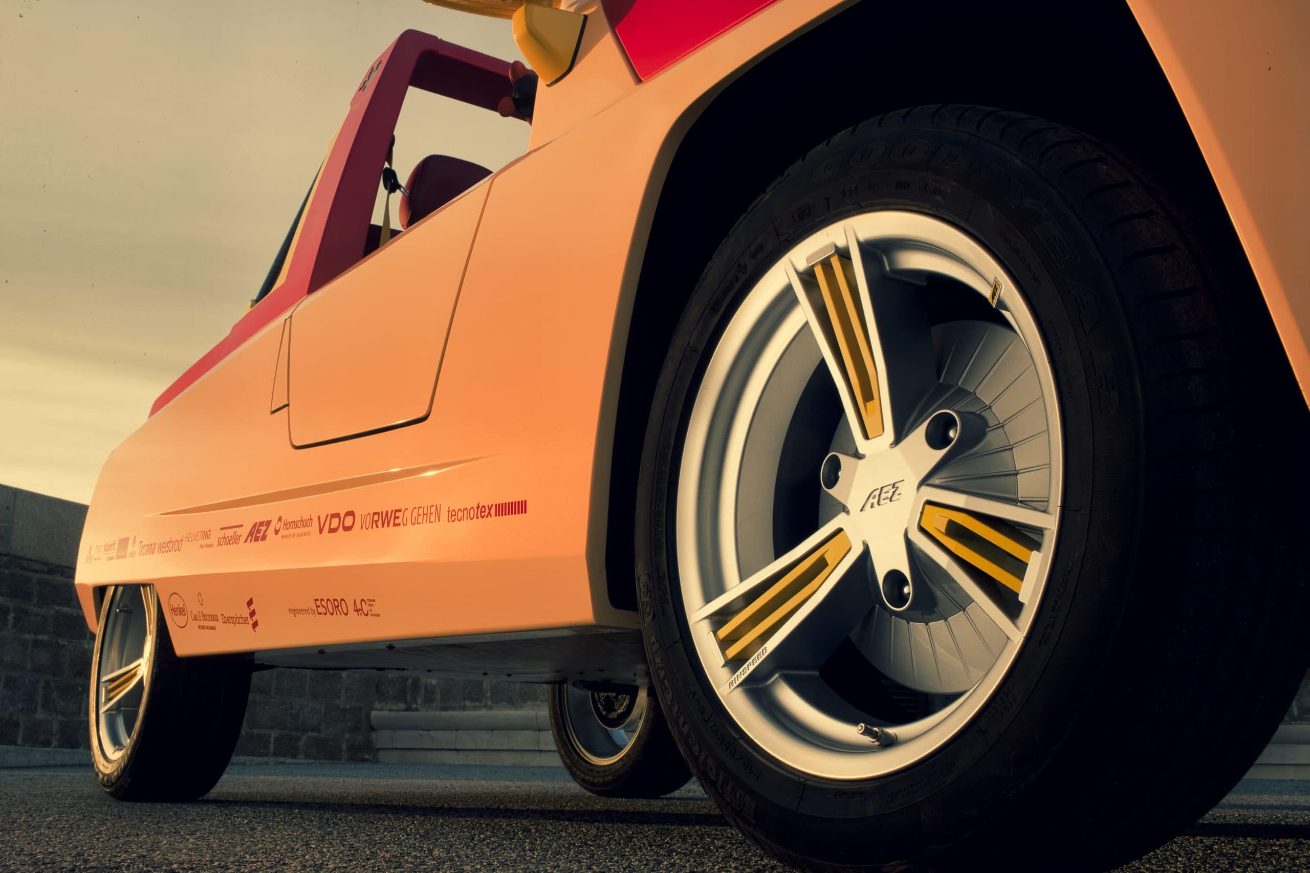 Cette petite quatre places de loisirs ne cachait pas son jeu…, ouverte au grand air, faite pour le soleil, l’été, la lumière et le bon temps… elle revenait aux sources du concept automobile…, un maximum de fibre de bambou, tant dans les constituants du véhicule que dans les détails et la décoration…, un toit gonflable…, mais aussi, pour être en harmonie avec son époque, une propulsion électrique qui ne devait rien à personne.