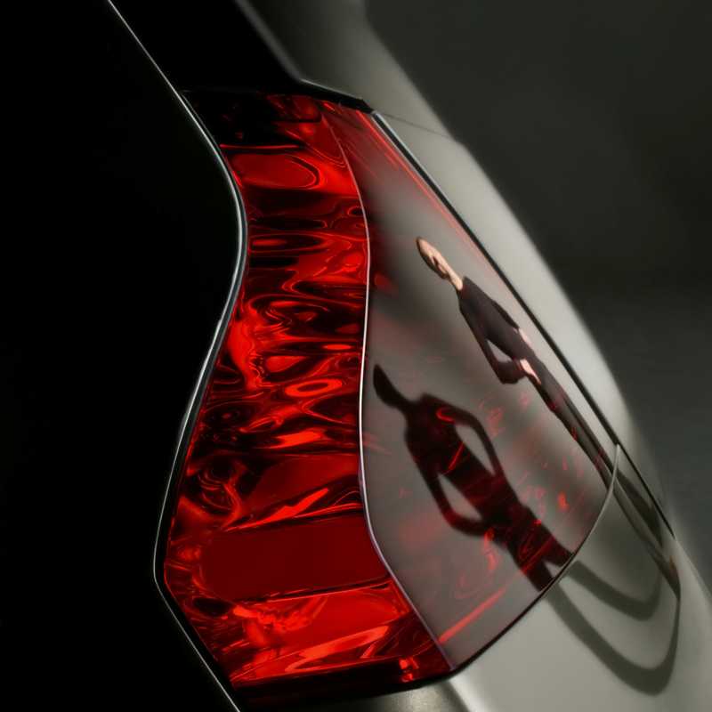 La voiture affiche un look excentrique par sa poupe, son pavillon et sa vitre arrière très inclinée.