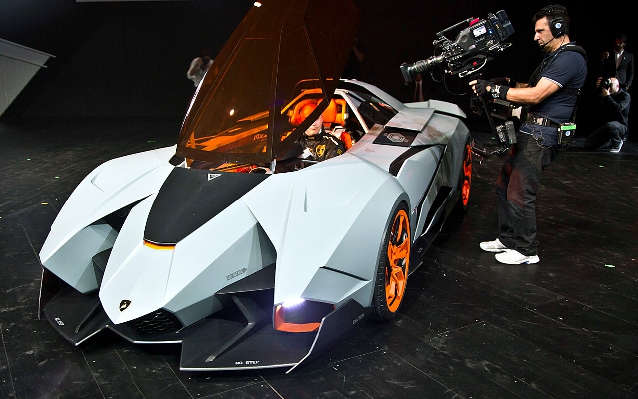 C’est d’ailleurs amusant de se dire que son style s’inspire de l’hélicoptère de combat Apache puisque ce dernier possède bien deux places en tandem, cette paternité peut seulement être revendiquée par la 2007 Tramontana… (une espèce en voie d’extinction) et la Twizzy… (nettement moins chère, on peut avoir 2.000 Twizzy pour une Egoïsta), on sait toutefois maintenant que l’auto faisait la part belle à la fibre de carbone et aux matériaux ultra-légers et qu’elle était mue par un V10 de 5,2 litres repris de la Gallardo Superleggera pourtant en fin de carrière (Son poids se situant au niveau du concept Sesto Elemento, histoire de garantir un rapport poids-puissance terrifiant)…
