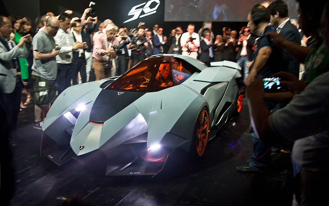 Au même mois de mars 2013, en suite immédiate de l’Egoïsta, Lamborghini avait collé une grosse claque visuelle aux visiteurs du salon de Genève avec sa Veneno, une supercar 2 places, hors de prix exagérément agressive présentée comme allant être construite en seulement une douzaine d’exemplaires…, on pensait-là avoir atteint le summum de la provocation de la part de Lamborghini, la marque de Sant’Agata s’autorisant cette autre supercar ultra-limitée, dont le style apparaissait au moins aussi ahurissant que l’Egoïsta…, la Lamborghini Veneno était le cadeau que la marque au taureau s’offrait pour son demi-siècle d’existence en 2013.