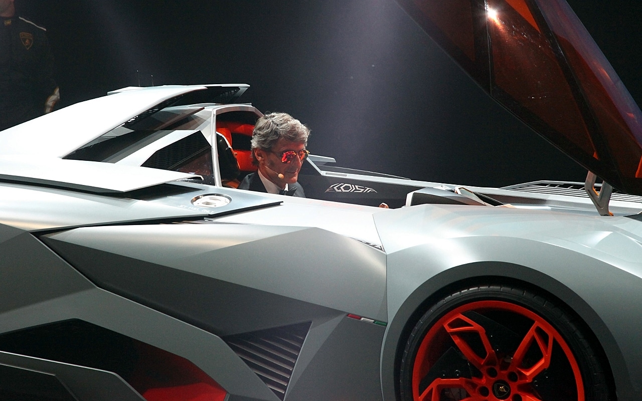 Walter de Silva l’irresponsable responsable de cette Egoïsta est Italien, peut-être était-ce pour lui une question d’honneur que de se surpasser en comparaison des designers Lamborghini attitrés… et, de plus, on ne peut pas dire qu’il ait rendu la tâche journalistique d’informer et commenter, de manière particulièrement facile, avec la présentation de cette Lamborghini inédite à l’occasion d’un grand rassemblement d’un millier de fanatiques de cette marque, organisé pour en fêter le cinquantenaire…, son personnage, était (et est toujours) une telle caricature qu’on le croirait échappé d’un “stoner movie” parfumé au Ricard, les cheveux ébouriffés, un début de barbe en bataille, les yeux constamment plissés par une migraine post-gueule de bois…