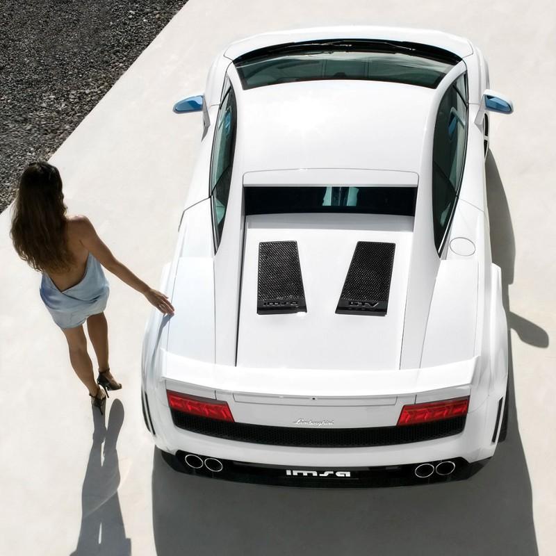 Une Lamborghini Gallardo IMSA-LP560-4 GTV… , blanche, baignant dans une lumière irréelle, dont l’oeil exercé saisit sans mal le caractère permanent.