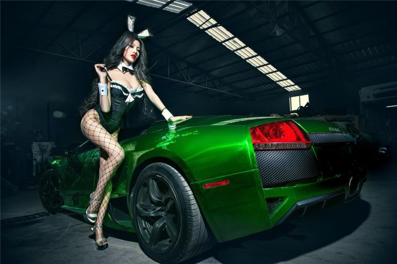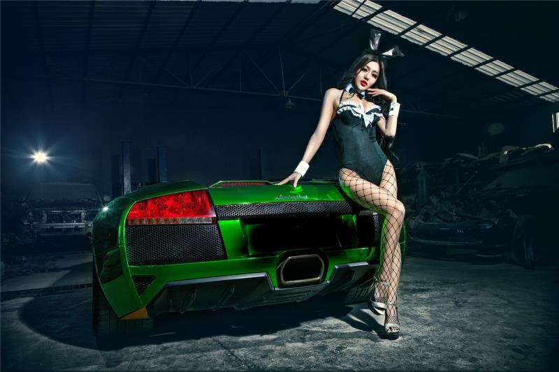 C’est en Chine que cette Murciélago verdââââtre (avant elle était jaune, le carrossier Pékinois a négligé divers détails de finition), a échoué…, elle se trouve au fin fond d’un sombre garage semblable à un royaume des ténèbres peuplé d’âmes à la dérive, invisibles et omniprésentes, inquiétantes…, dirigées par une fille sexy sans foi ni loi !