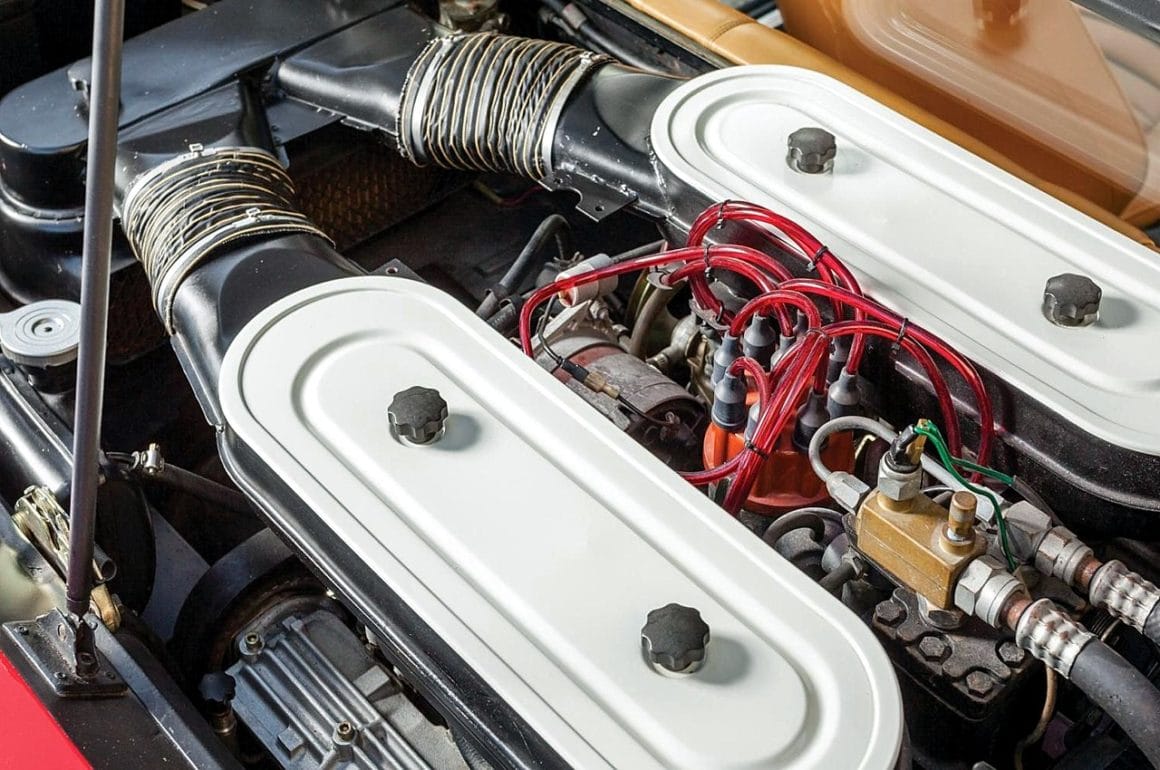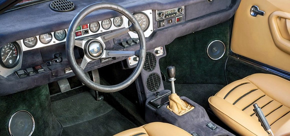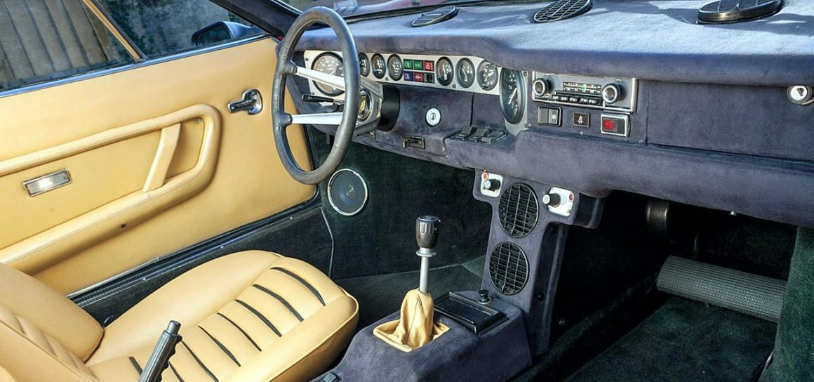 Doté d’une distribution à arbre à cames unique par rangée de cylindres (entraîné par courroie crantée, un système bassement copié par Ferrari), le V8 Lamborghini développait la puissance phénoménale de 220 chevaux, soit nettement plus que les misérables 195 chevaux de la Dino 246 GT.