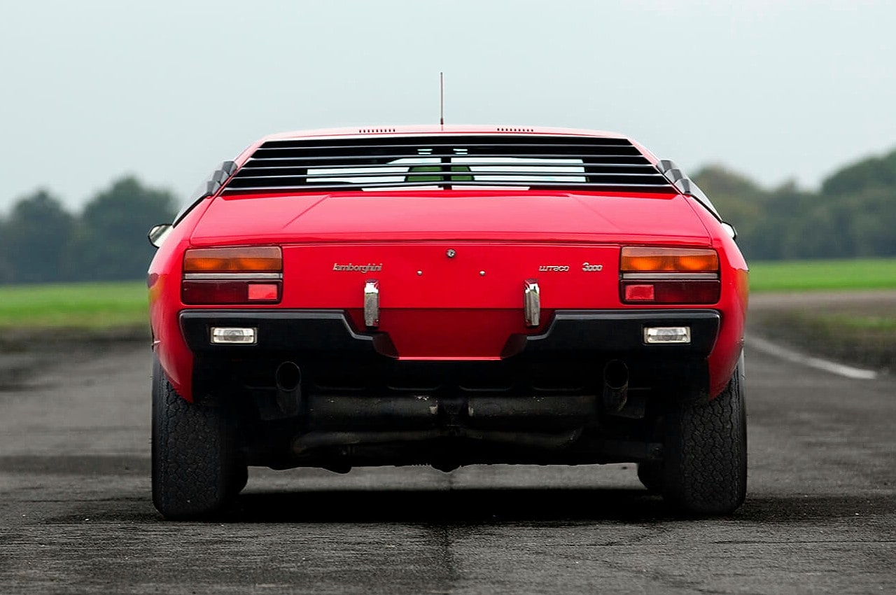 L’empattement très long de la Lamborghini Urraco (2,45 mètres) pour un véhicule de ce gabarit (4,25 mètres de longueur) et le poste de conduite avancé dessinaient une silhouette singulière, marquée par la proportion inhabituelle entre l’habitacle et le volume global de la voiture…, dessinée sous la responsabilité de Marcello Gandini, l’Urraco faisait admirer l’élégance de ses lignes tendues, un habile compromis entre arêtes vives et contours arrondis…, et comme sur la Miura, une jalousie prenait place à l’arrière, dont le motif en retour servait de décor aux entrées d’air latérales du panneau de la custode.