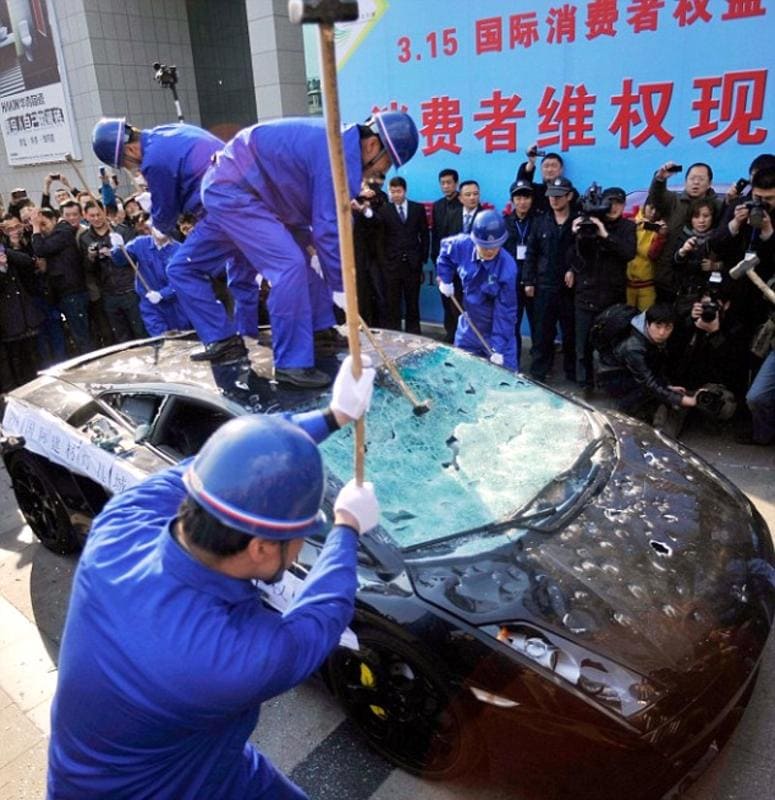 Il a donc décidé que la meilleure façon d’attirer l’attention du monde entier, n’était pas de faire un procès qui aurait été interminable et aurait coûté énormément d’argent…, un procès qui aurait été auto-censuré par les médias automobiles qui dépendent pour leur survie financière des publicités des constructeurs…, mais de faire détruire publiquement sa voiture par le peuple Chinois en colère !