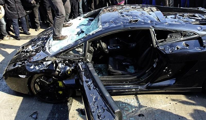 A l’origine, il devait se faire filmer détruisant lui-même la voiture et poster la vidéo sur internet, mais il a finalement choisi la rue pour faire casser publiquement sa supersportive.