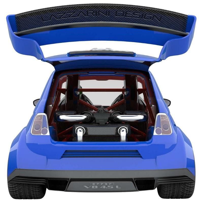 Le concept est assez simple : on prend une base de Fiat 500, on ramène le moteur à l’arrière… et pas n’importe quel V8…, ne vous attendez toutefois pas à retrouver en position centrale arrière un V8 des années 80 tout droit sorti d’une 308 GTB ou GTS.