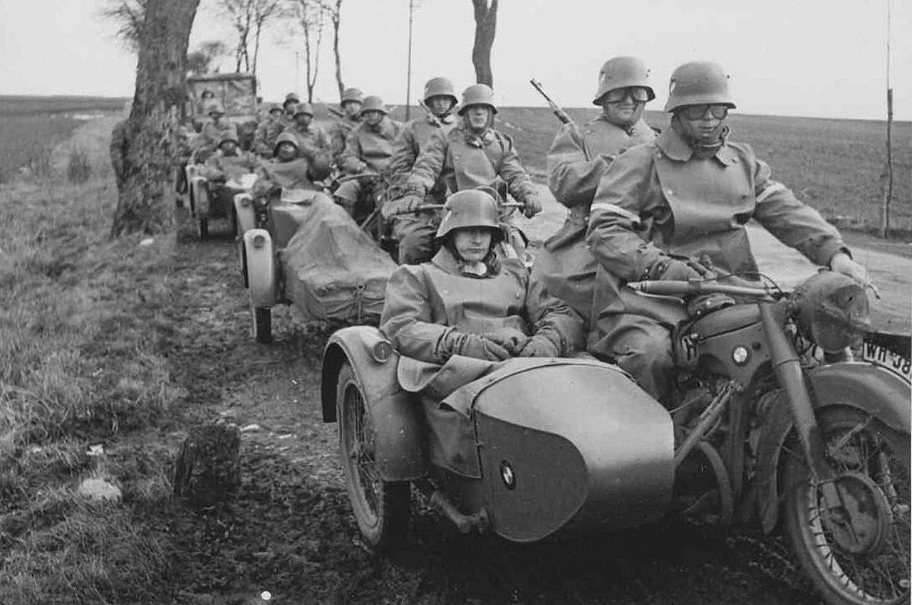 Durant la seconde guerre mondiale, j’ai un souvenir très vague de ces motos qui faisaient un bruit d’enfer, mais à l’époque les fameuses BMW R-75 équipées d’un side-car possédaient déjà des capacités « tous terrains » hors du commun, avec notamment l’entraînement via deux roues motrices ainsi qu’un blocage du différentiel, les Zundapp KS-750 reprenant pratiquement le même schéma technique ainsi que 70 % de pièces interchangeables.